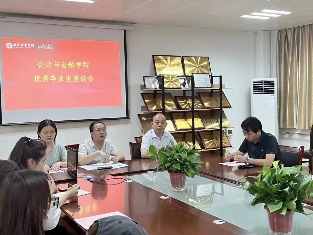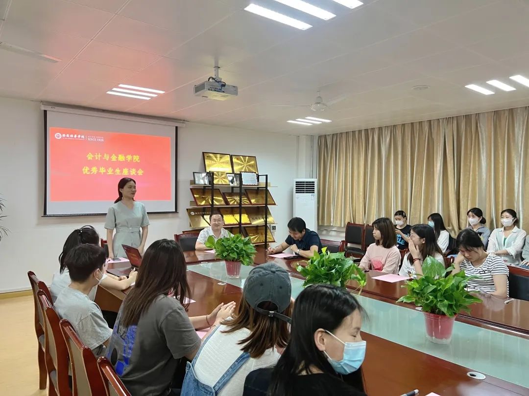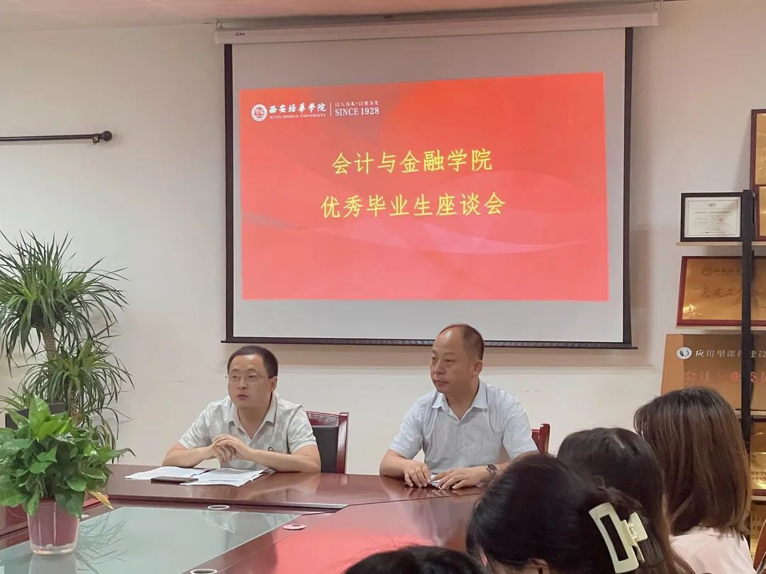 为了让在校生学习到优秀毕业生的学习与实践经验,完善学业规划。西安培华学院会计与金融学院于2022年6月28日17:00在博远楼2115开展优秀毕业生座谈会。本次座谈会的参会人员有会计与金融学院党委书记兼行政副院长史立军,学院校友负责老师梁博,2021届优秀毕业生吕飞、宋婷婷,以及2020、2021级本专科学生。