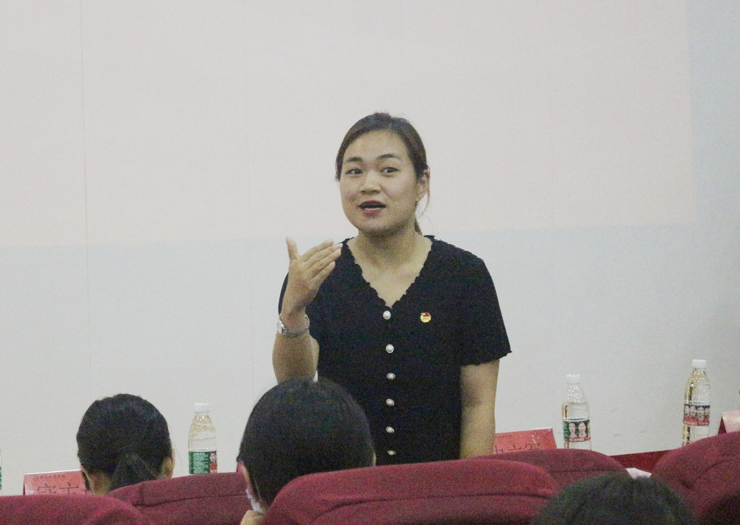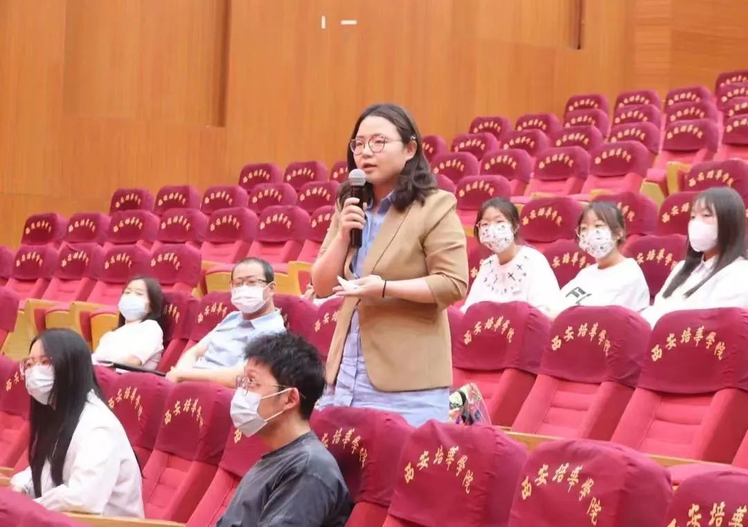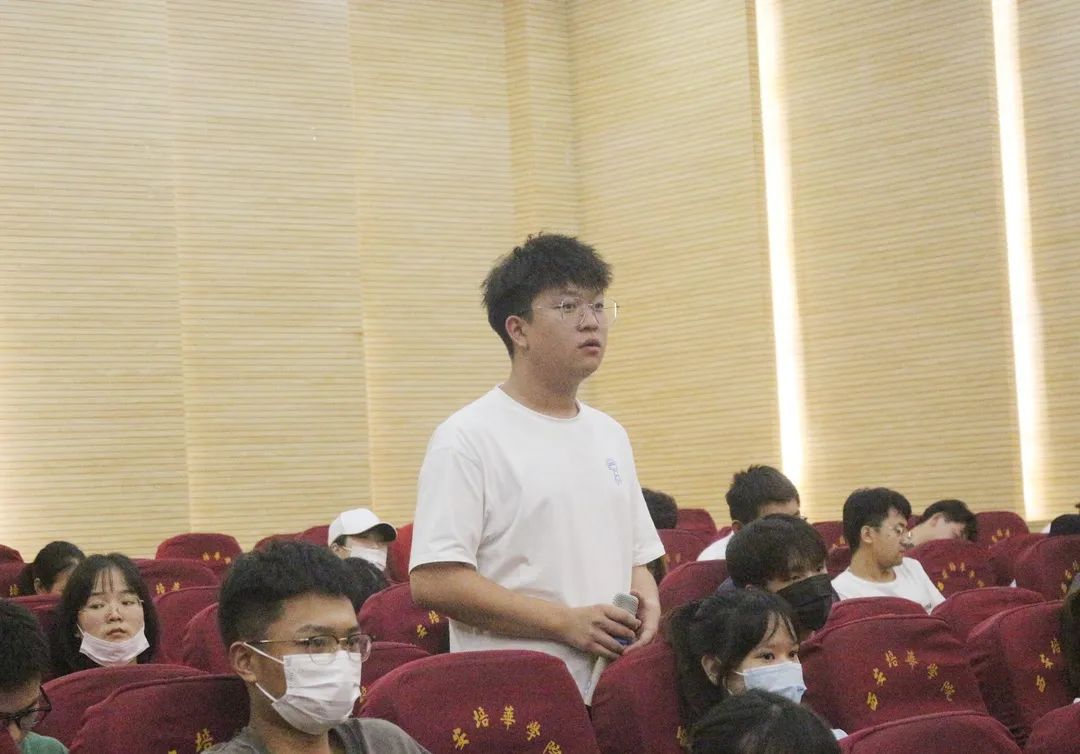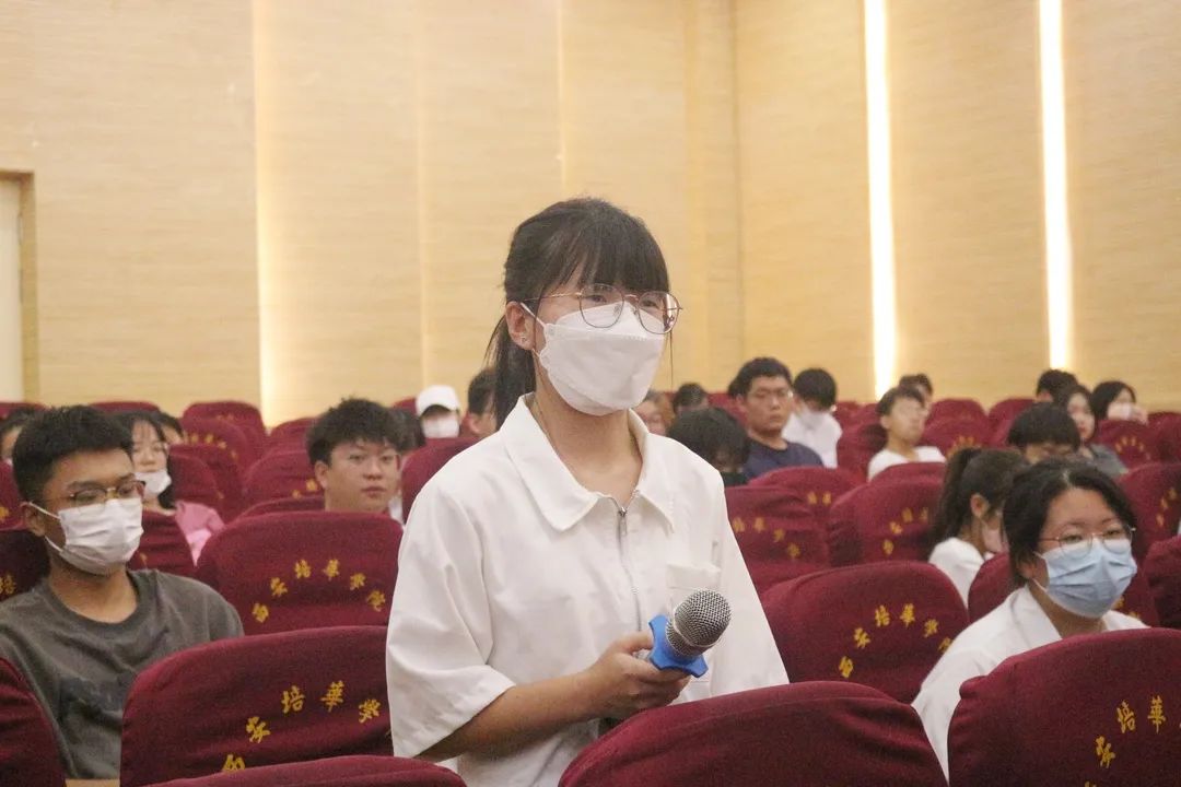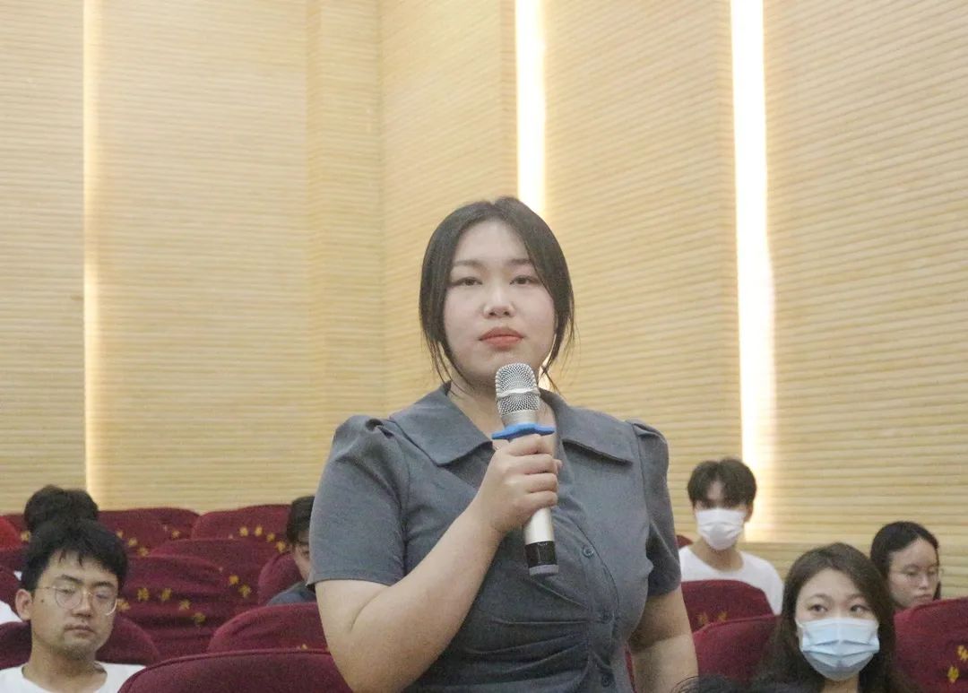优秀队伍代表潘虹上台为同学们答疑解惑,期间杨媛老师也积极地回答同学们的问题,并对同学们今年的三下乡活动提出了希望。