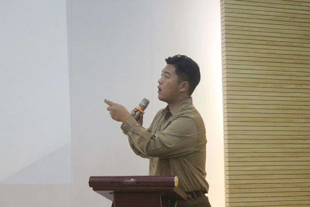 首先是“雏萤逐梦”志愿服务队负责人吕雪倩进行分享,接下来是“焰火青年”社会实践队负责人李顺风做分享,讲述了他们三下乡时期的经历和感悟,使人感触很深刻。