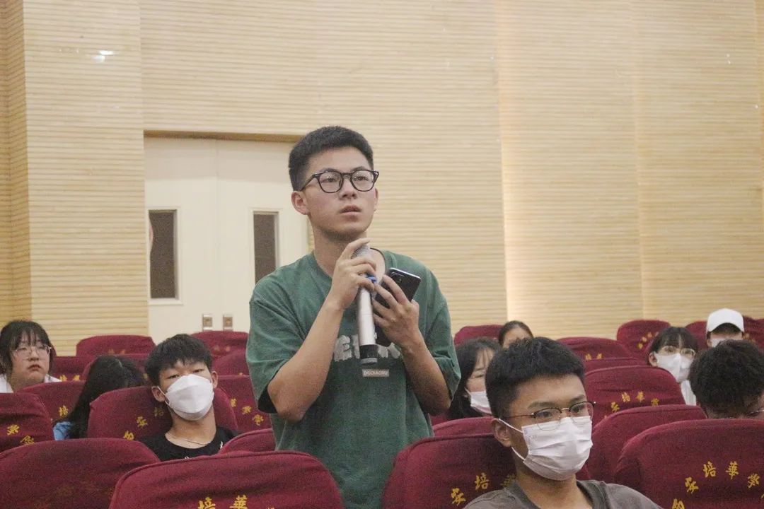 在大会的提问环节,教师代表向王海峰老师提出了“我曾经也参加过三下乡活动,现在是我们会计与金融学院的一位老师,您认为如何将三下乡的成果和数字化、经济化结合起来呢?”的问题。