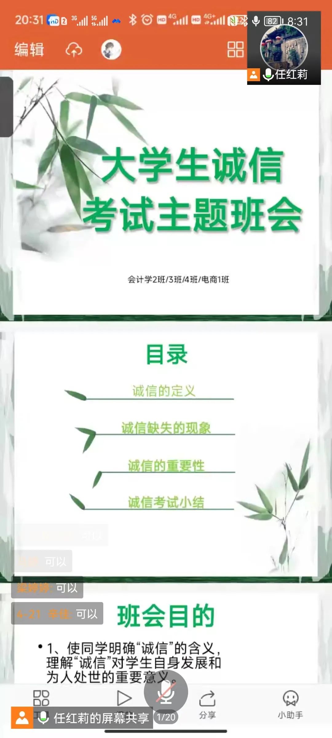 为营造诚信考试,杜绝作弊的教考环境,会计与金融学院6月15日—6月21日开展了以“诚信考试,杜绝作弊”为主题的班会。