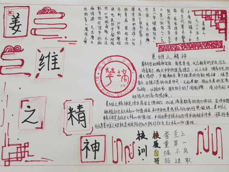为充分践行“姜维之精神”,会计与金融学院开展了争创“姜维之班”系列主题征文和⼿抄报,,同学们积极参与进来,用实际行动践行社会主义核心价值观。我院将“姜维之精神”立足于新时代,传播于学子们的身边,滋润培华千千的学子们。