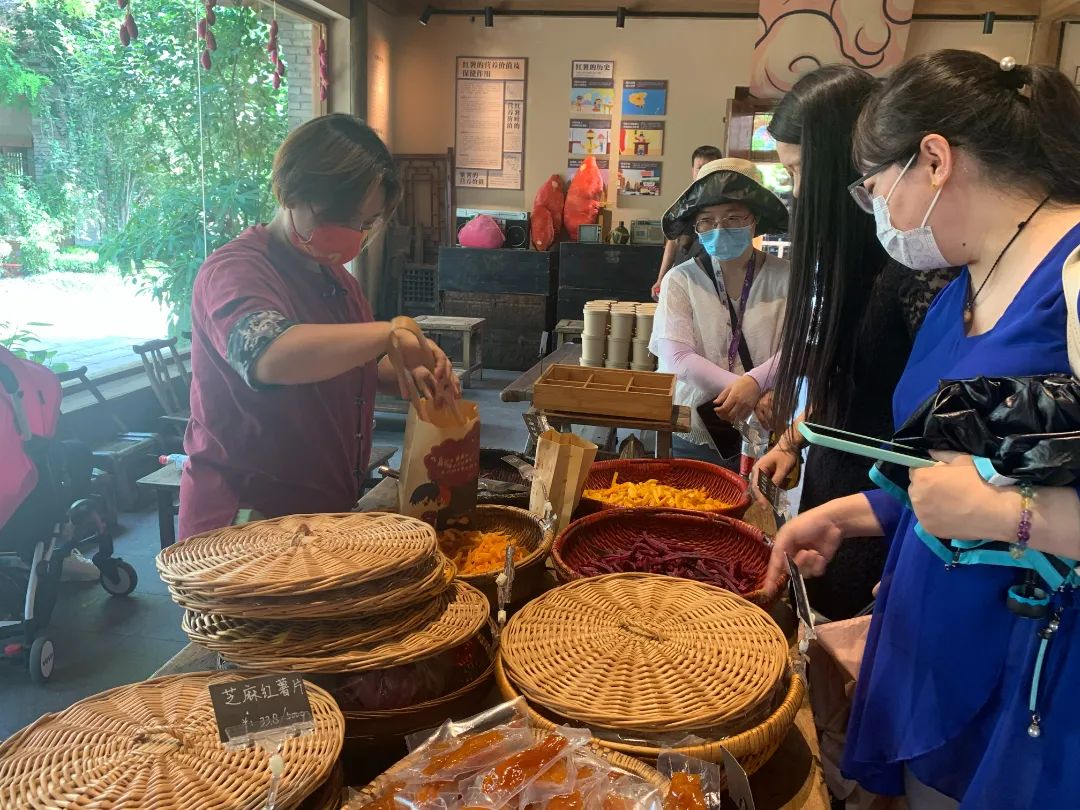 接着来到了唐村展厅,⾥⾯展示了唐村特色文创产品,他们有个统一的名字 “唐小牧”, 在展厅中比较吸引人的展品当属“桂花球”大米,这正是柳⻘《创业史》中梁生宝千⾥跋涉给乡亲们带回来的水稻品种,此外还有老油坊榨油豆子酒水等具有唐文化和乡村特⾊的展品唐村民居现在变成了民宿和商铺贴合乡村生活和唐文化与周围环境融为⼀体,游客可以在商铺喝茶吃红薯,除此以外,还有⼀些汉服商店供游客拍照。
