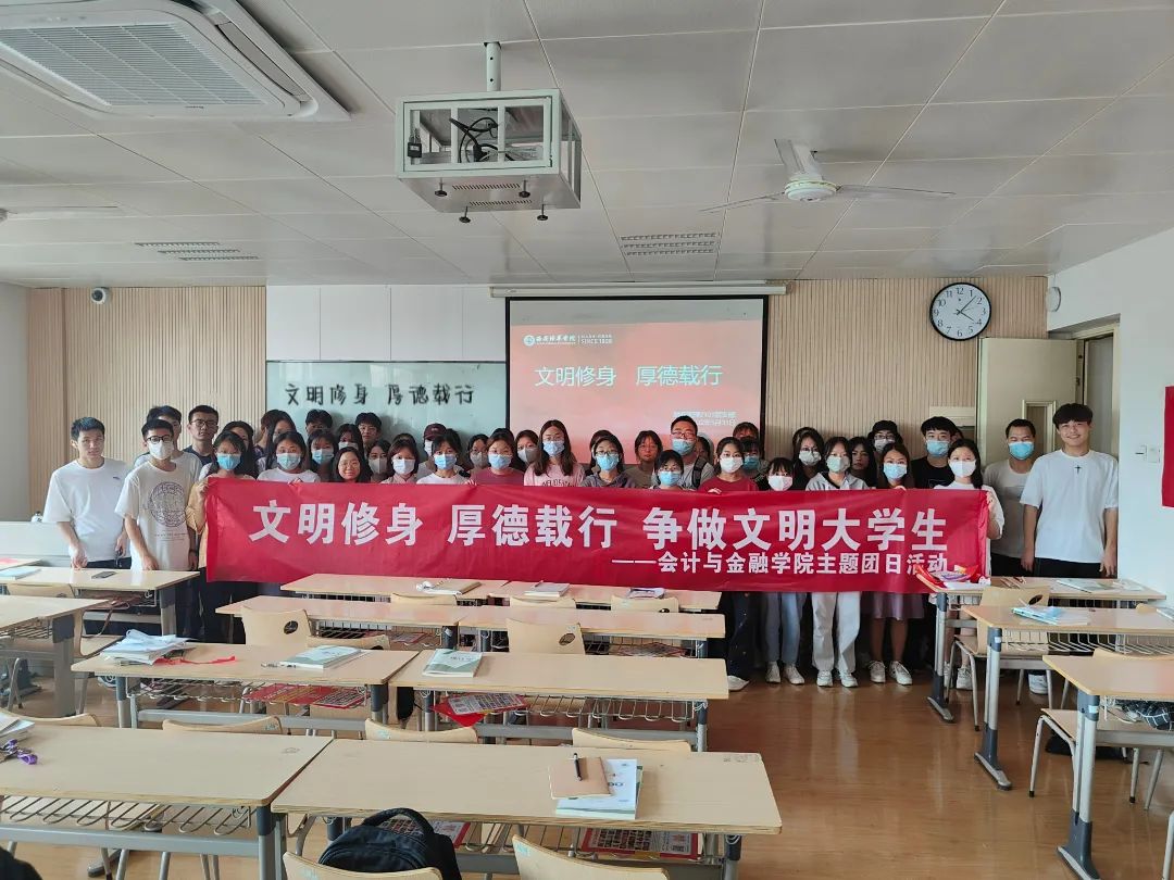 学风建设,是校风和校园文化建设的重要内容。为进一步丰富大学生的课余文化生活和活跃校园文化气氛,努力推进我校各班级各方面的建设和发展,聚力打造环境优雅、学风浓厚、班风向上、和谐稳定的班级文化。以此为契机,结合实际情况和具体特点,紧扣校园建设的核心灵魂,会计学2101班、会计学2102班、财务管理2101班、人力资源管理2101班等全院所有班级分别于2022年6月19日开展了“文明修身·厚德载行”主题团日活动,着力建设“优良学风”班集体为新的学年里新的共同奋斗目标。营造良好的校园文明氛围。