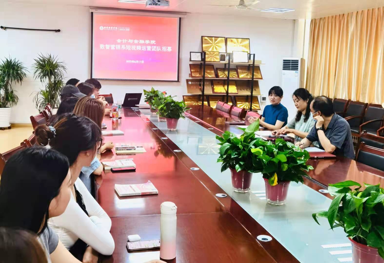 2022年6月17日上午10:30会计与金融学院数智营销系在博远楼2115召开短视频运营团队招募面试面谈会,参加本次面试共计20人,均来自市场营销与电子商务专业在校生,岗位包括导演、编辑、运营策划,本次面试官由丁阳主任、杨柏欢老师、吴曼丽老师担任。