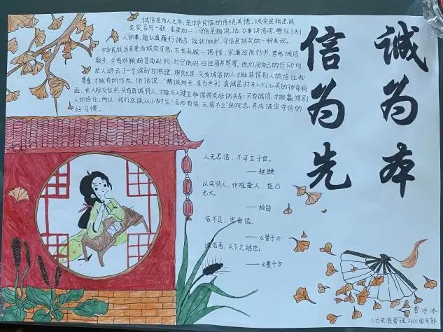 为引领我院青年学习和践行诚信美德,进一步发挥“社会主义核心价值观”引领作用,引导广大青年正确理解诚信的具体内容,明确青年的正确方向和成长的正确道路,扛起时代赋予的大旗,争做时代新青年。我院团委特组织各团支部开展以“树诚信新风尚,做时代新青年”主题团日活动,并向全院共青团员征集优秀征文和创意手抄报。