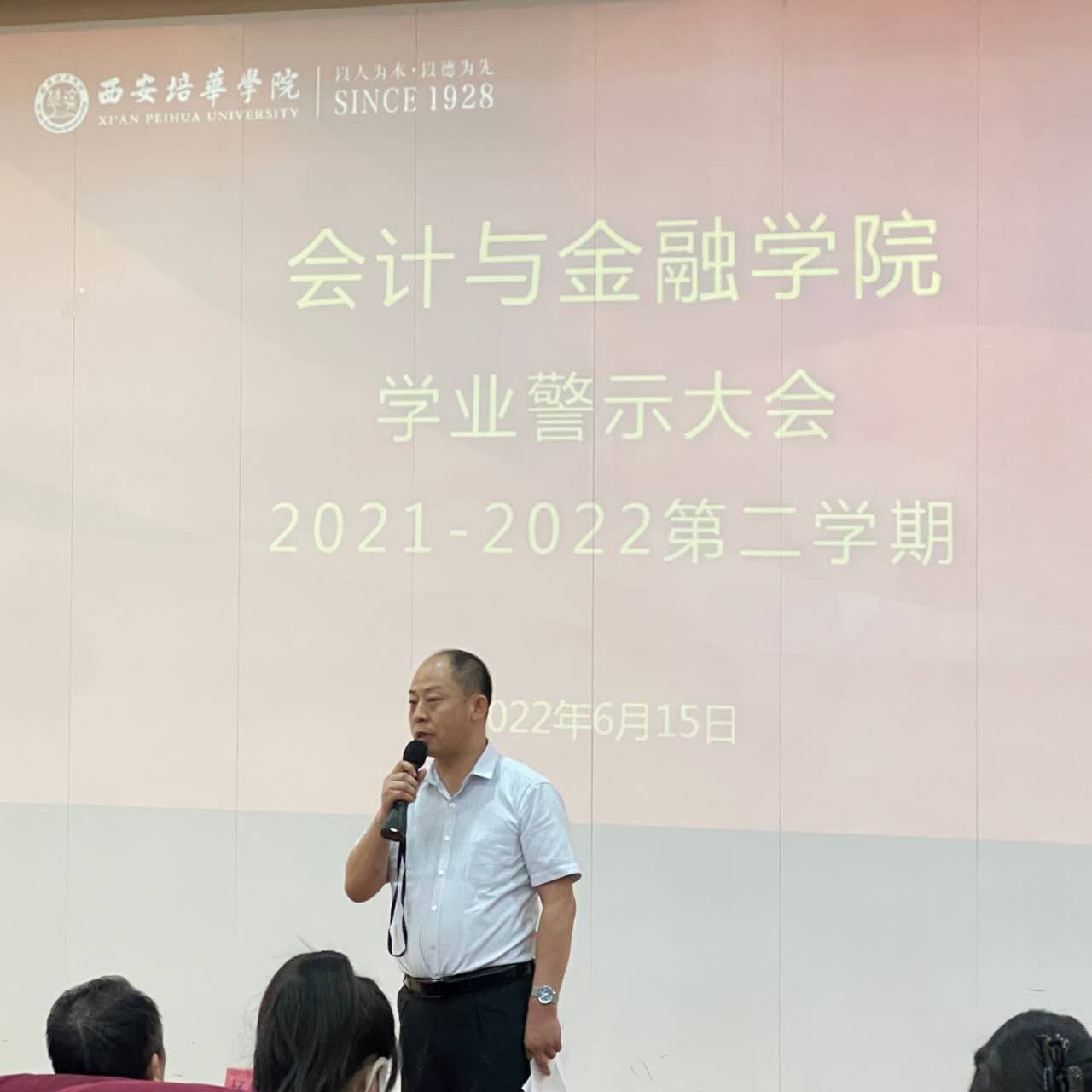 为了进一步加强学风建设,强化对学生的学业管理,做好学业困难学生引导,2022年6月15日,会计与金融学院在博远楼J201召开了2021-2022第二学期学业警示教育大会。学院教学副院长杨仕鹏、行政副院长史立军、党委副书记韩斌、各专业负责人、辅导员以及学业导师、学生干事、及受警学生参加了此次会议。