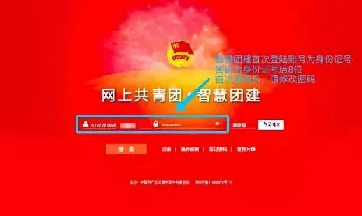 2、登录平台:团员的账号为自己身份证号码,初始密码为身份证号码后8位。
