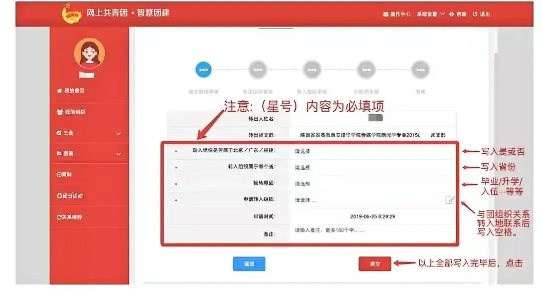 团员组织关系接转团员可以自己发起申请,点击网站登录,选择关系转接、选择转入团支部和原因,提交后通知当前所在支部管理员即可。团组织管理员也可以选择组织关系转接,选择需要转出的团员然后提交即可。