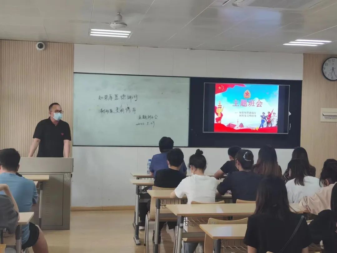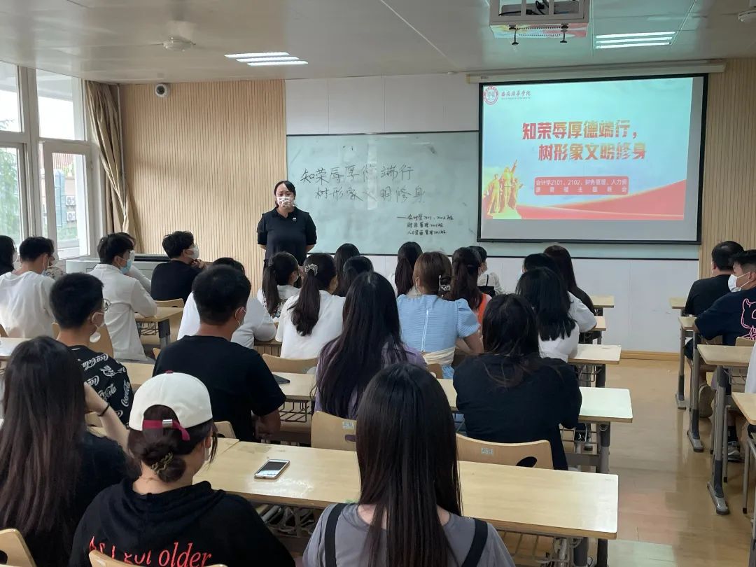 “国尚礼则国昌,家尚礼则家大,身尚礼则身正,心尚礼则心泰。”为切实加强疫情防控常态化背景下的学生教育管理工作, 进一步引导学生坚定理想信念、涵养崇高品德,提振精神面貌、践行文明行为、优化校园环境,西安培华学院会计与金融学院各年级于5月29日18:00召开“知荣辱厚德端行 树形象文明修身”主题班会。