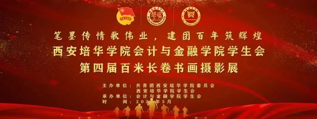 为迎接中国共产主义青年团建团100周年,激发同学们的爱国情怀,弘扬共青团精神,坚持不懈奋斗、报效祖国的信念。西安培华学院会计与金融学院学生会于2022年5月19日12:30在综合楼西广场举办第四届“笔墨传情歌伟业,建团百年筑辉煌”百米长卷书画摄影展。