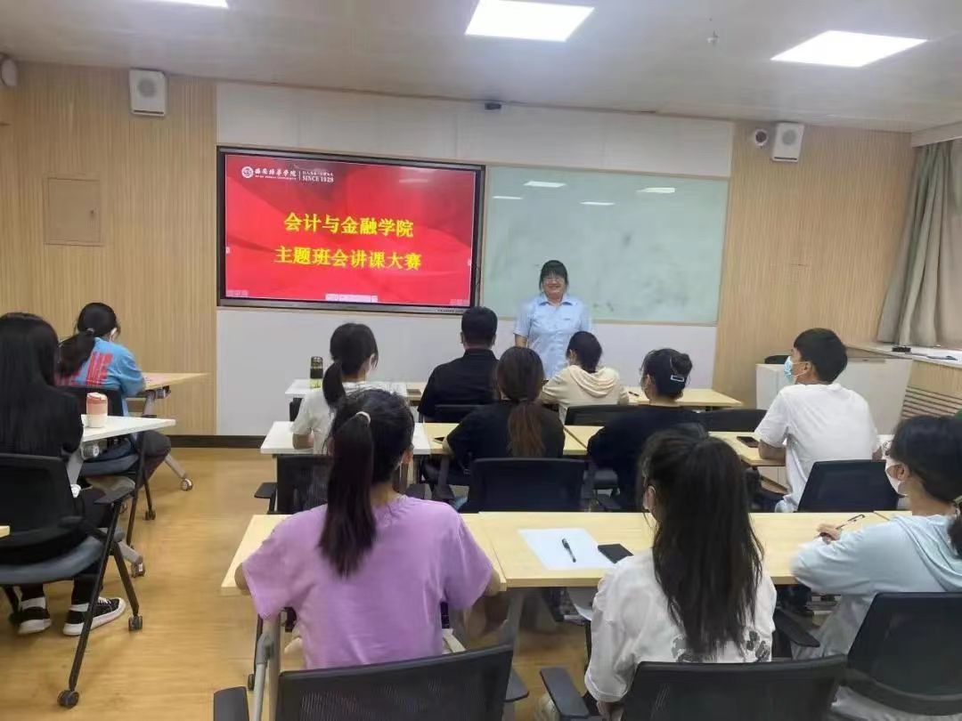 为进一步加强我院辅导队伍建设,努力提升辅导员职业能力水平和学生管理能力,推进学生管理方式和教育手段的改革创新,激发辅导员工作的主动性和创造性,会计金融学院于5月26日举办辅导员主题班会讲课大赛本次大赛分为A、B两组进行,大赛包括主题班会课程教案和主题班会现场演示两部分。参与此次大赛的嘉宾有会计与金融学院党委书记兼行政副院长史立军、党委副书记韩斌、胡景莲老师、牛雅琪老师。