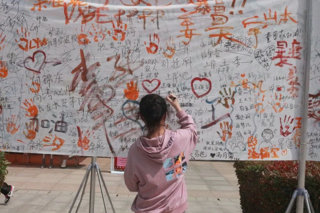 王敏老师介绍本次活动的流程:“本次活动为期两天,于5月19日举行活动开幕式进行签字仪式,鼓励学生积极参加,展现学生积极向上的精神面貌;组织学生按手印,以笔墨寄情,以作品言志,此次书画摄影展不仅为广大同学提供一个交流、展现自我的平台,同时有助于推进学院的精神文明建设。”