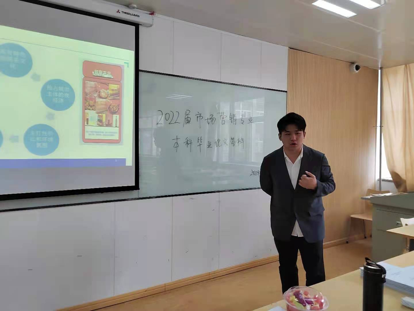 本次毕业答辩之前召开答辩讨论会,各位老师对于学生论文撰写情况、本届论文答辩要求、答辩流程、论文质量要点、答辩过程控制等方面进行了深入交流,严保本届论文质量更上一层楼。5月19日下午13:00在博远楼2417和2418召开两场线下毕业答辩会。答辩小组成员提前审阅本组学生论文并交流观点,答辩开始时组长宣读答辩小组成员及相关工作职责、评分标准、学生答辩流程环节等。经过8个小时的精彩答辩,线下两场毕业答辩落下帷幕。5月20日下午14:00对7名因为服兵役、疫情等情况不能到校答辩的同学组织线上答辩会场,至此,市场营销专业2022届57名本科毕业生答辩圆满举办。