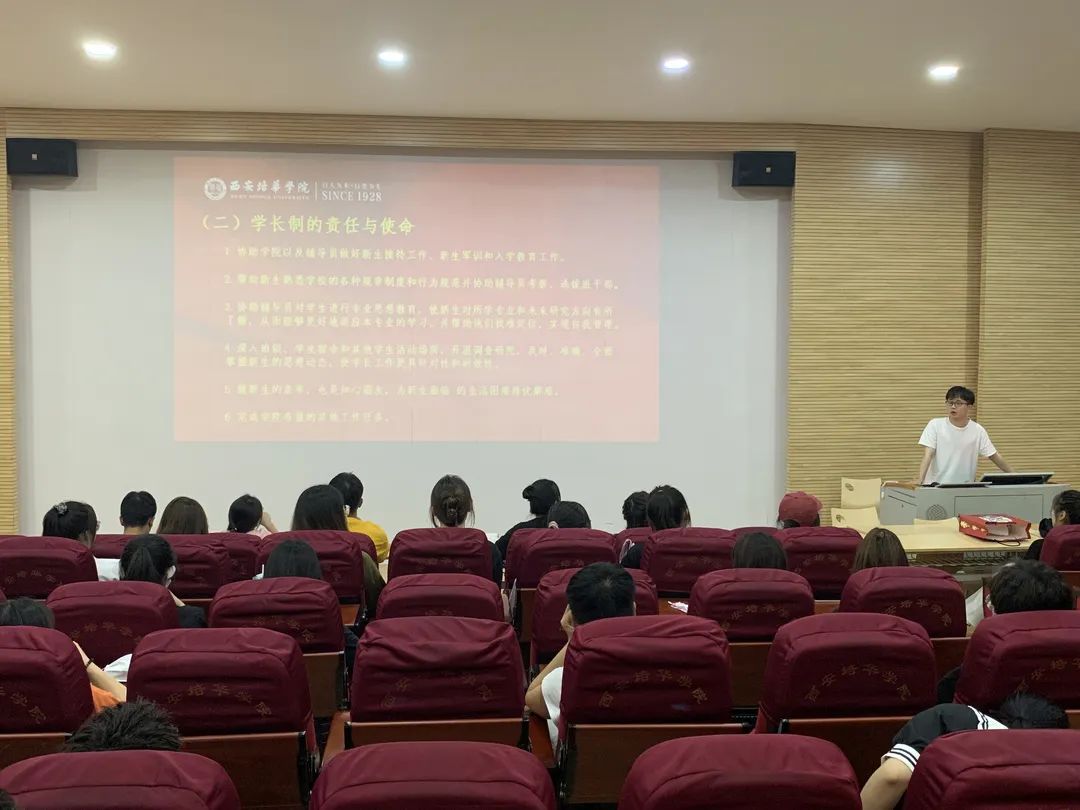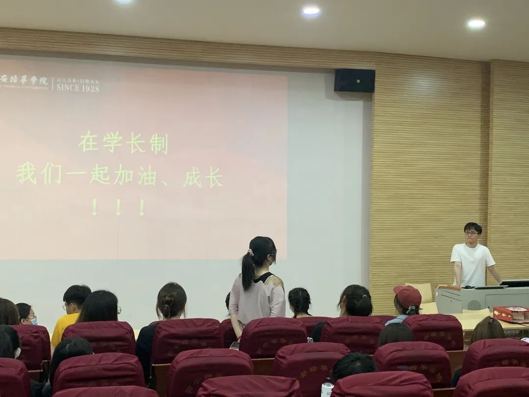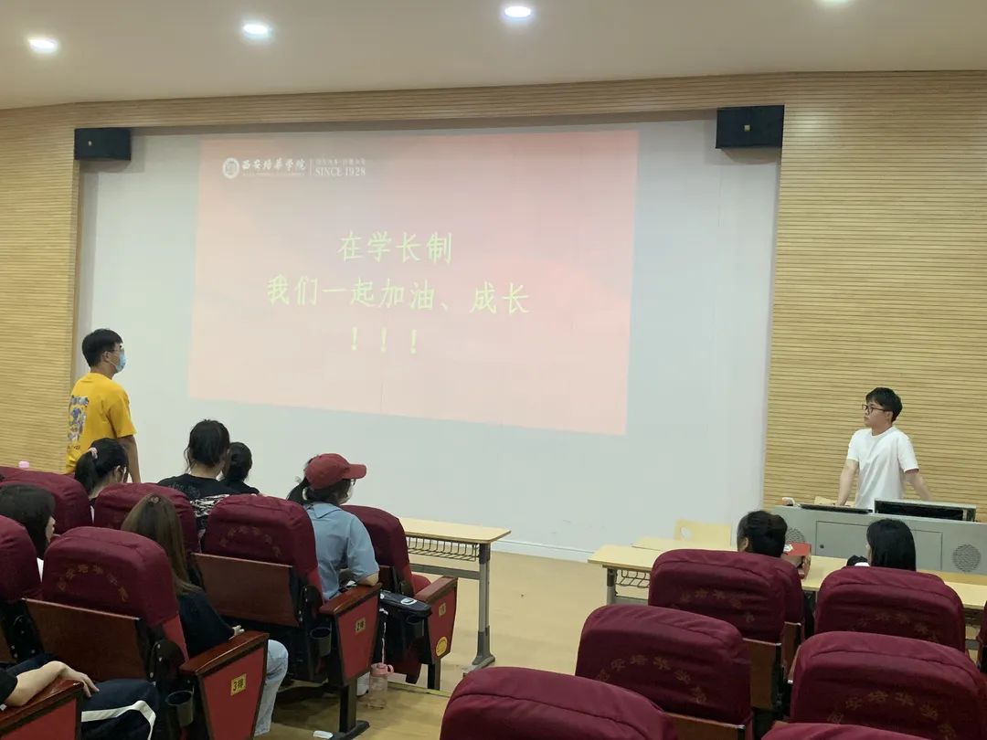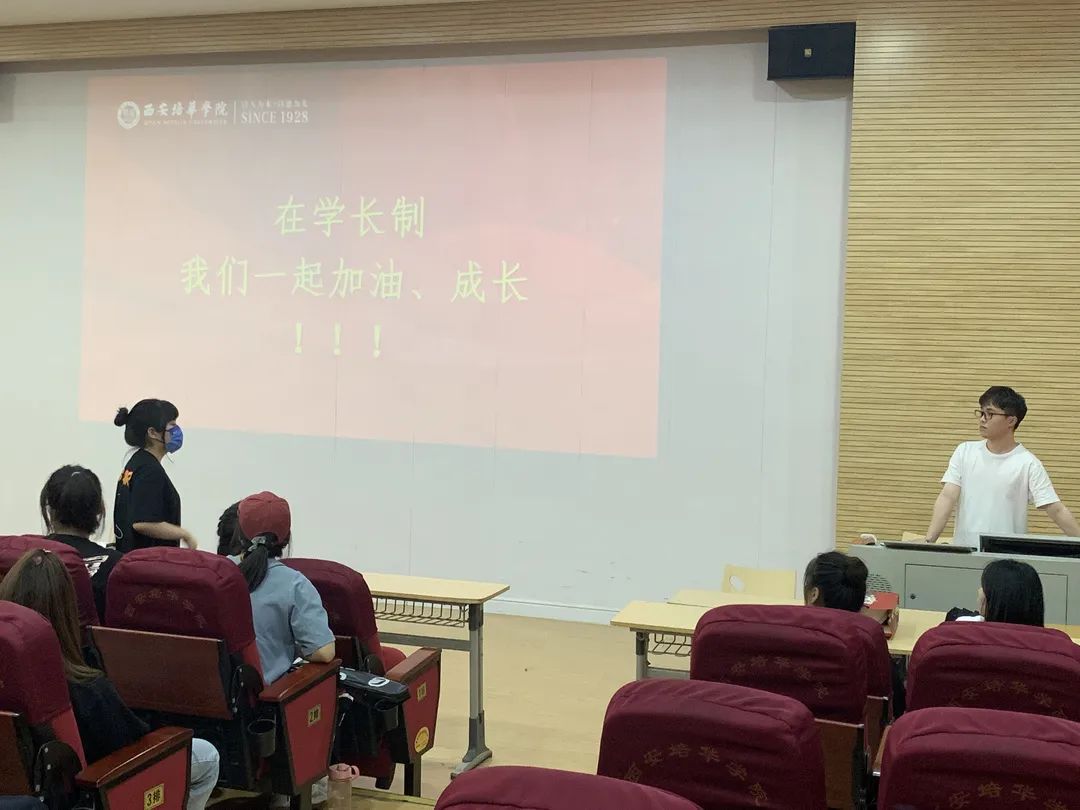 学长制负责人张燚行同学讲到,2022届学长制制度有部分改进;第一考核最主要依据是百分制考核表,依据工作完成度以及日常表现来进行评价;第二考核以小组化分组考核,实施“两带三帮六组”,做到严格应聘;第三需要注意的是后期评奖评优严格按照考核标准进行评选;第四是我院“学长制”始终严格按照公正、公平、公开的方式进行选拔,聘任的学长会统一颁发聘书,聘期为一年。