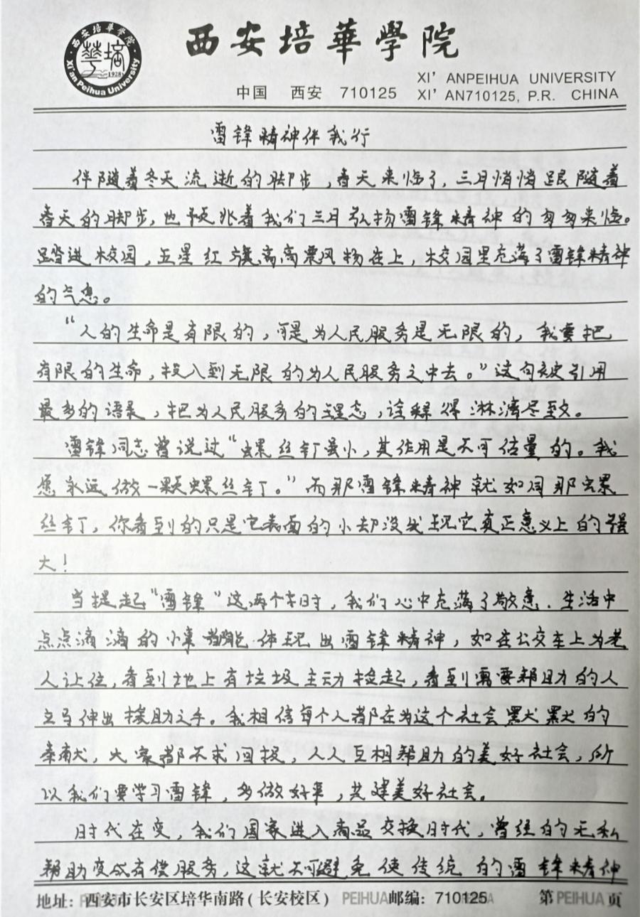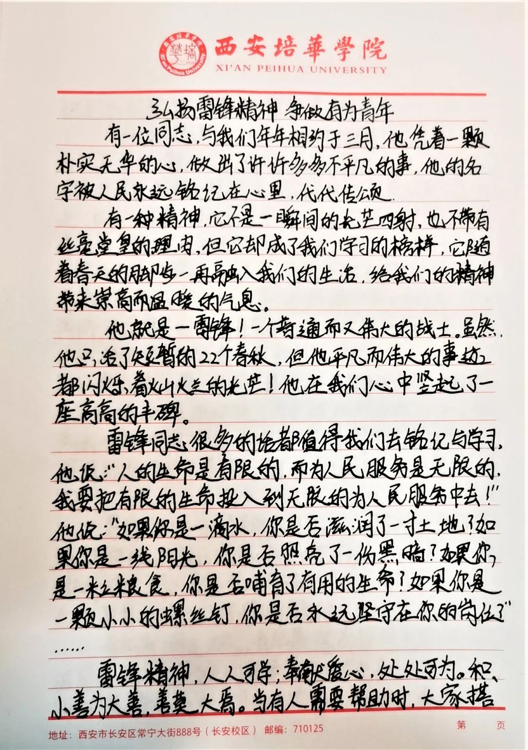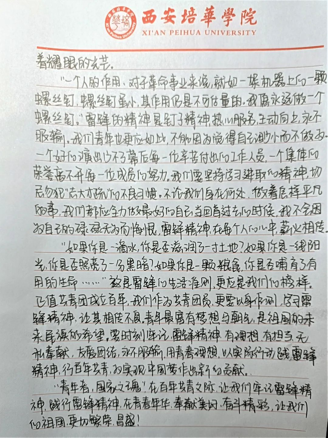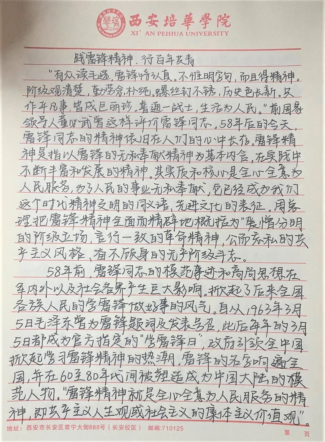 西安培华学院会计与金融学院学生会为此举办了“践雷锋精神,行百年共青”作品展活动,主要作品形式有征文、书法、手抄报。