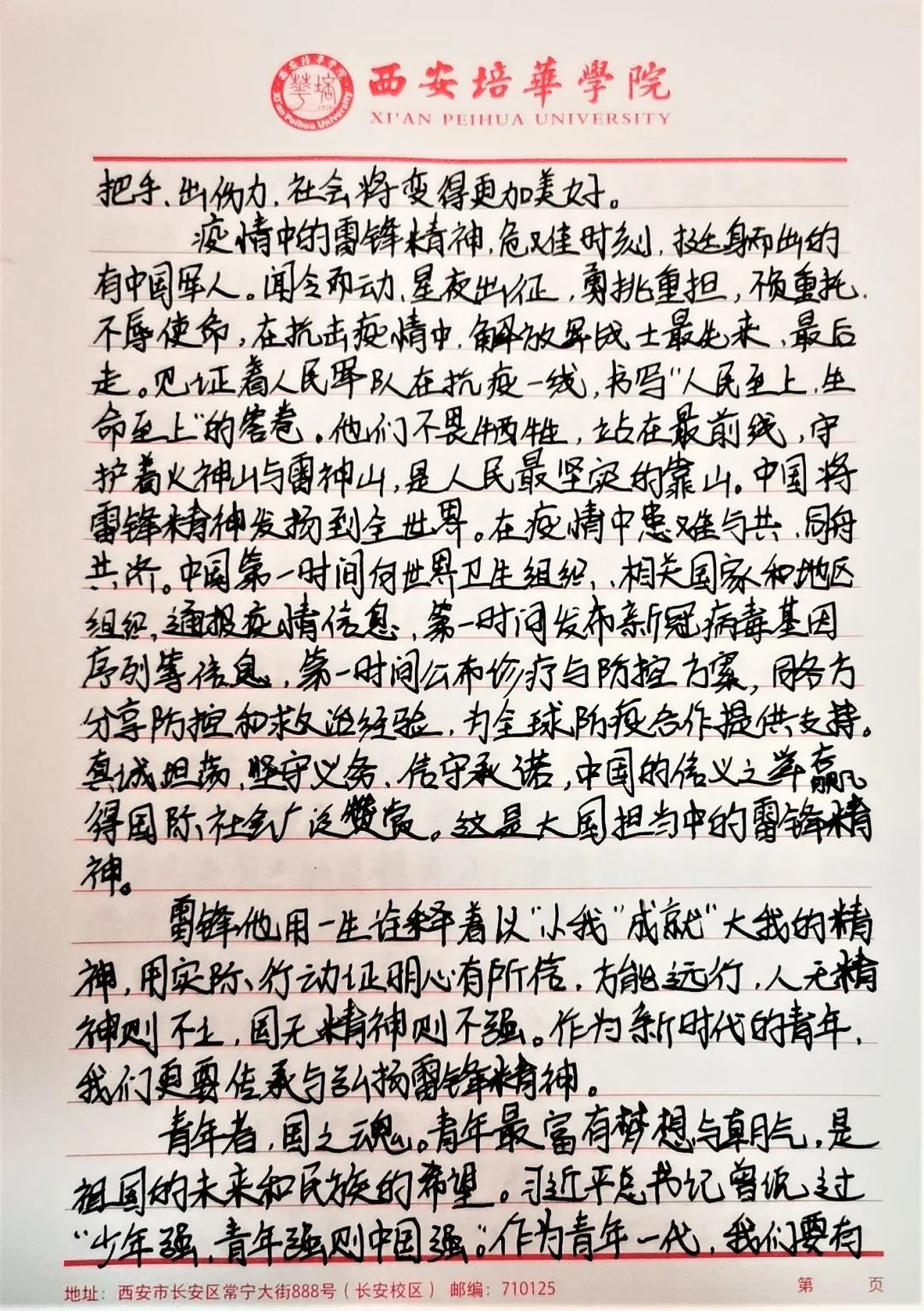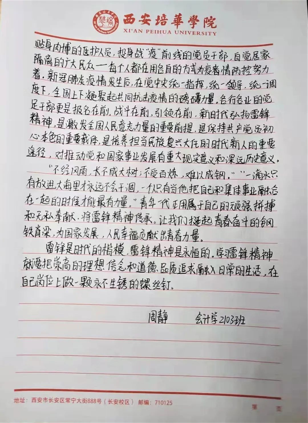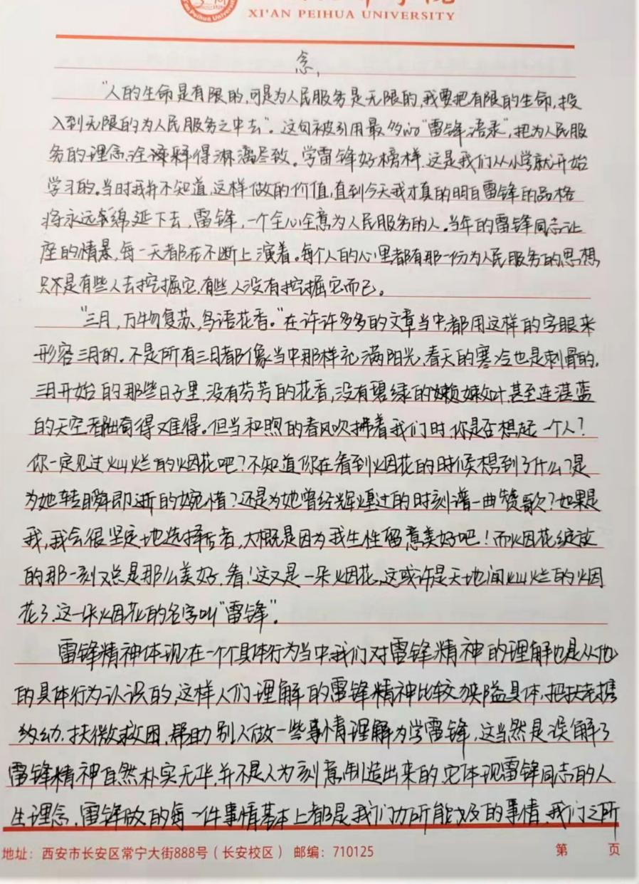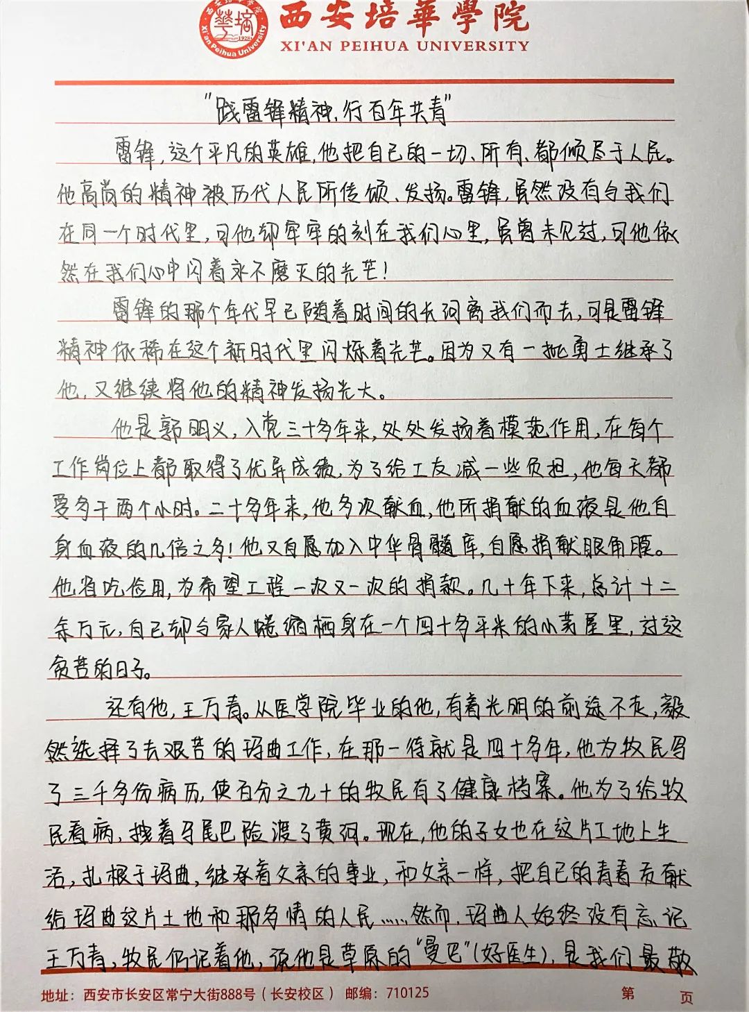 西安培华学院会计与金融学院学生会为此举办了“践雷锋精神,行百年共青”作品展活动,主要作品形式有征文、书法、手抄报。