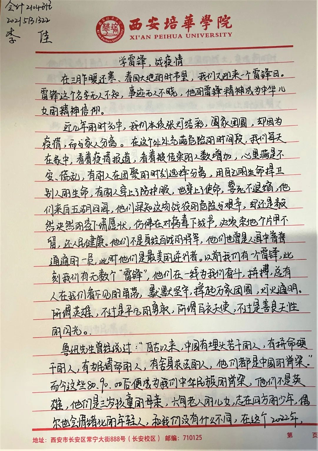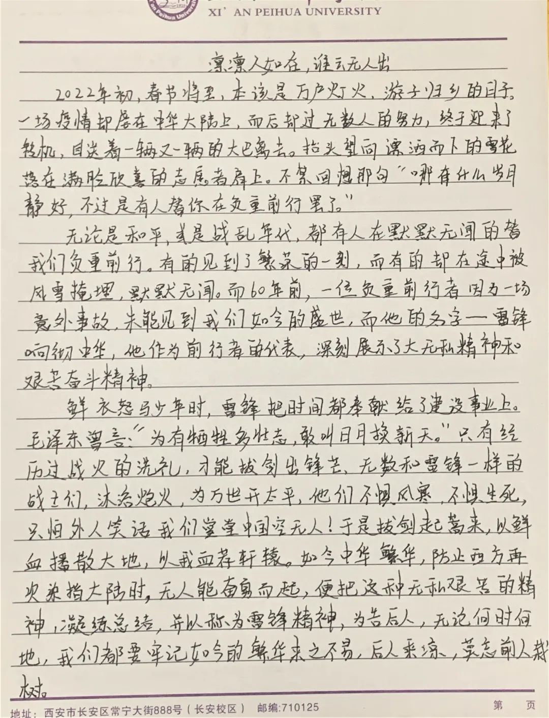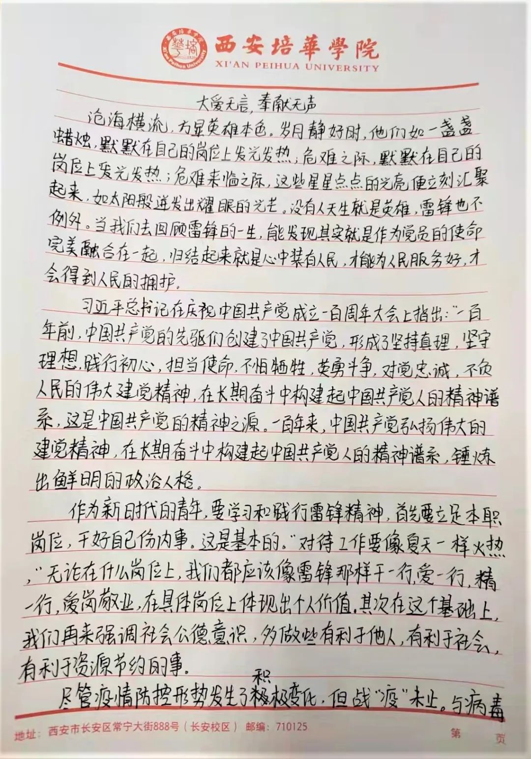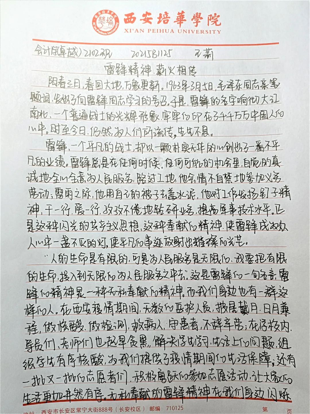 西安培华学院会计与金融学院学生会为此举办了“践雷锋精神,行百年共青”作品展活动,主要作品形式有征文、书法、手抄报。