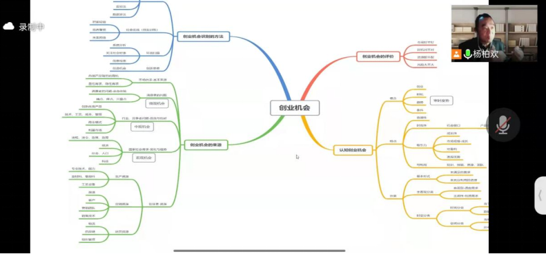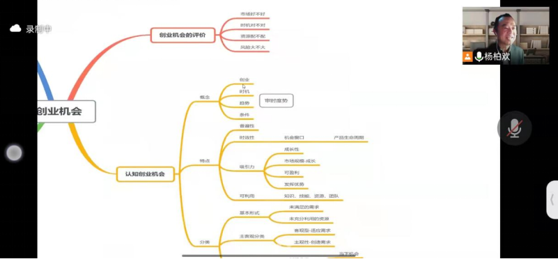 首先,杨伯欢老师将创业机会细分成认识创业机会、创业机会的来源、创业机会识别的方法、创业机会的评价共四个方面向大家进行逐一讲解。