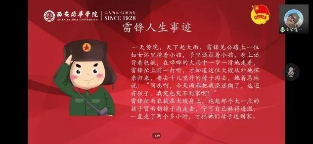 为引导我院学生树立积极正确的人生态度,深刻理解雷锋精神的时代内涵,弘扬“奉献、友爱、互助、进步”的志愿服务精神,并通过雷锋精神与疫情防控的影响下,促进我院学生形成高尚的道德品质,产生巨大的行为力量,从而树立正确的三观。我院团委特此于2022年3月22日19:00在线上举办践行雷锋精神团日活动。
