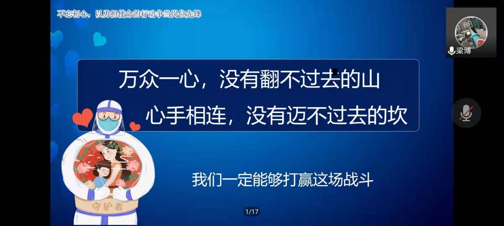 各学生党支部书记在本次线上学习会议中,就疫情期间校园生活和学生党员志愿者经历和收获进行分享,并着重关注疫情期间学生的身心健康。学生第二党支部书记杨玉春同志指出:疫情是一场没有硝烟的战争,疫情防控刻不容缓,全体学生党员都要将当前时期作为打赢疫情防疫战的关键时期,船到中流浪更急、人到半山路更陡,我们唯有不忘初心、牢记使命,以实际行动做好疫情防控工作,与全院师生共同打赢疫情防控阻击战。”