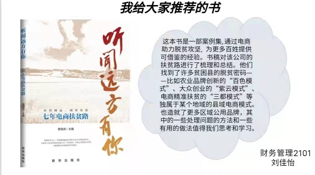 本次读书交流会由管理系主任郭琳琳主持,她向当天参会的师生分享了自己居家期间的阅读感受,她认为读书能带给人心灵的慰藉,阅读的力量远远超乎我们的想象。疫情肆虐,我们每位师生通过阅读感受书籍的温度,让这段共同抗“疫”的岁月化为捧卷悦读的文明积淀。管理系几位学业导师分别分享了自己与学生在线上进行的讨论和读书指导,所有参与其中的师生都认为利用这段时光积极阅读,用知识武装自己变得意义非凡。最后由几位学生代表向大家进行图书推荐,并分享自己阅读后的感受。