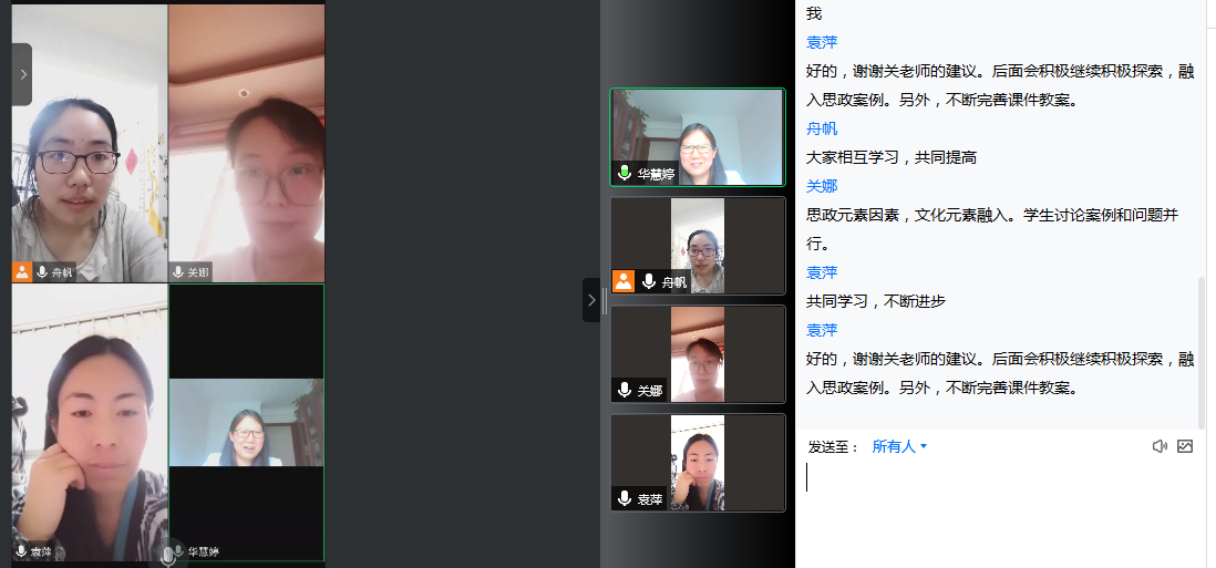 首先,线上开课的关娜老师、华慧婷老师就线上上课情况进行汇报,并给之后授课的老师提供线一些注意事项与授课建议给。