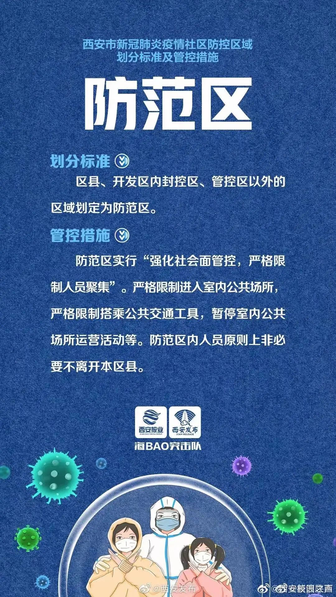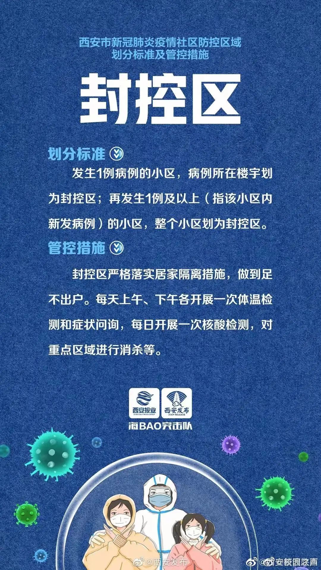疾控专家于2022年1月4日表示,西安要解除管控措施,首先就得实现“社会面清零”。“社会面清零”是社区筛查清零之后发现的所有新的确诊病例,都已在隔离的密切接触或者是密切接触的密切接触者当中,在社区已经不在社区面的疫情传播了。这就需要了解封控区、管控区,防范区相关知识。
