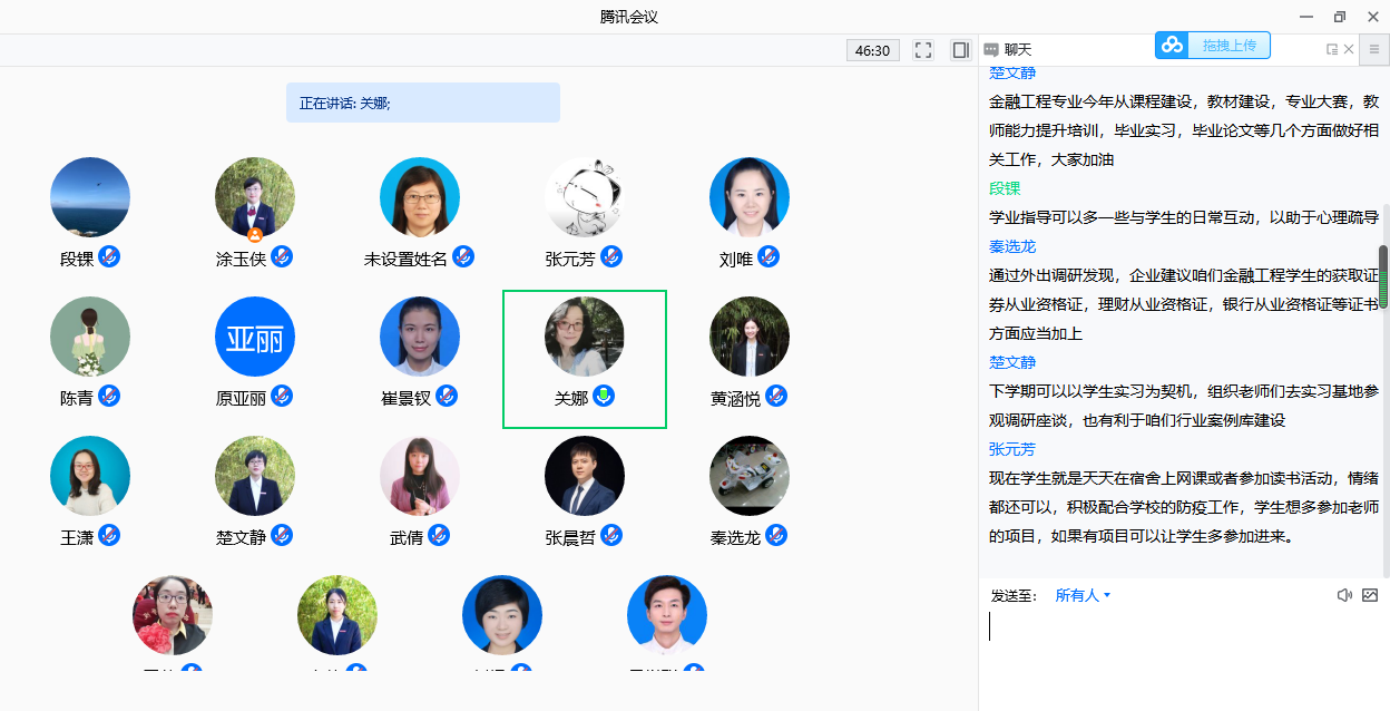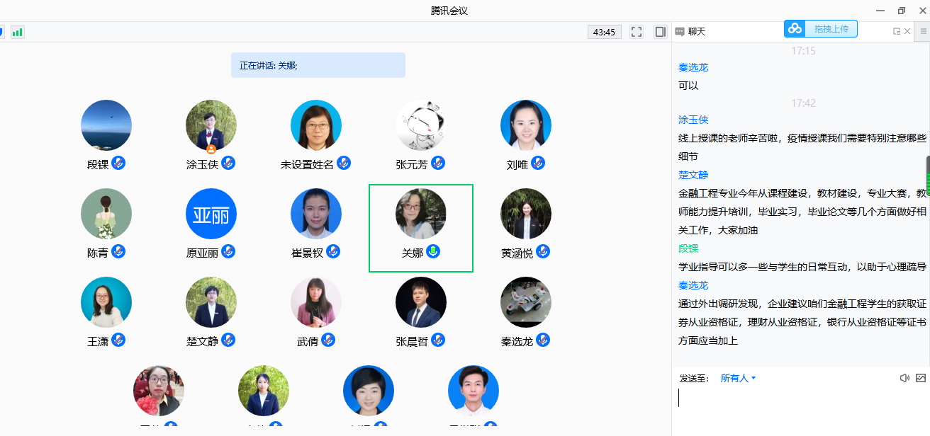 本周是教学以来的第20周,1月10日下午5:00-6:00,经济系教师在线上召开了本周教学例会,会议围绕各项教学工作进行展开。参与此次会议的有经济系全体教师,本次会议由经济系副主任涂玉侠老师主持。
