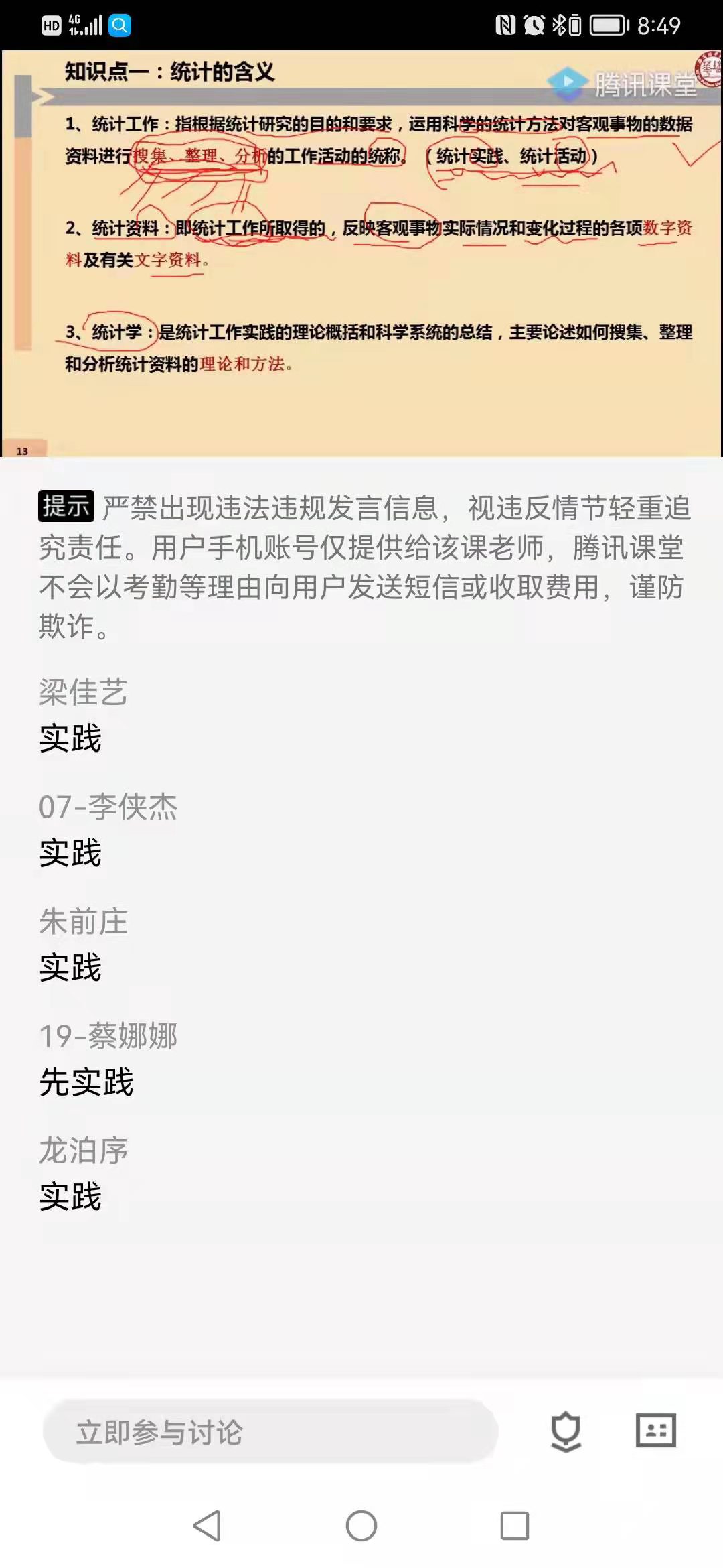 秦芳老师的《统计学》课程是省级一流课程。秦老师把课程任务、课程输出、课堂特点做了详细介绍。讲解知识点时结合当前疫情情况,对学生心理进行疏导。对于课后作业,秦老师更是高标准严要求,要求学生用思维导图的形式对课堂知识点进行整理。