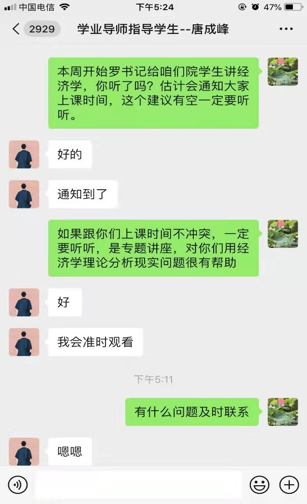 本周是教学第19周,经济系符合线上授课条件的部分课程如期进行,为了保证教学、学习质量,各位线上授课的老师们精心准备,以一种轻松有趣的方式在线传授专业知识;学业指导老师们也在实时与专业学生们就学习问题进行日常交流,旨在能及时解决学生在平时学习中遇到的问题。