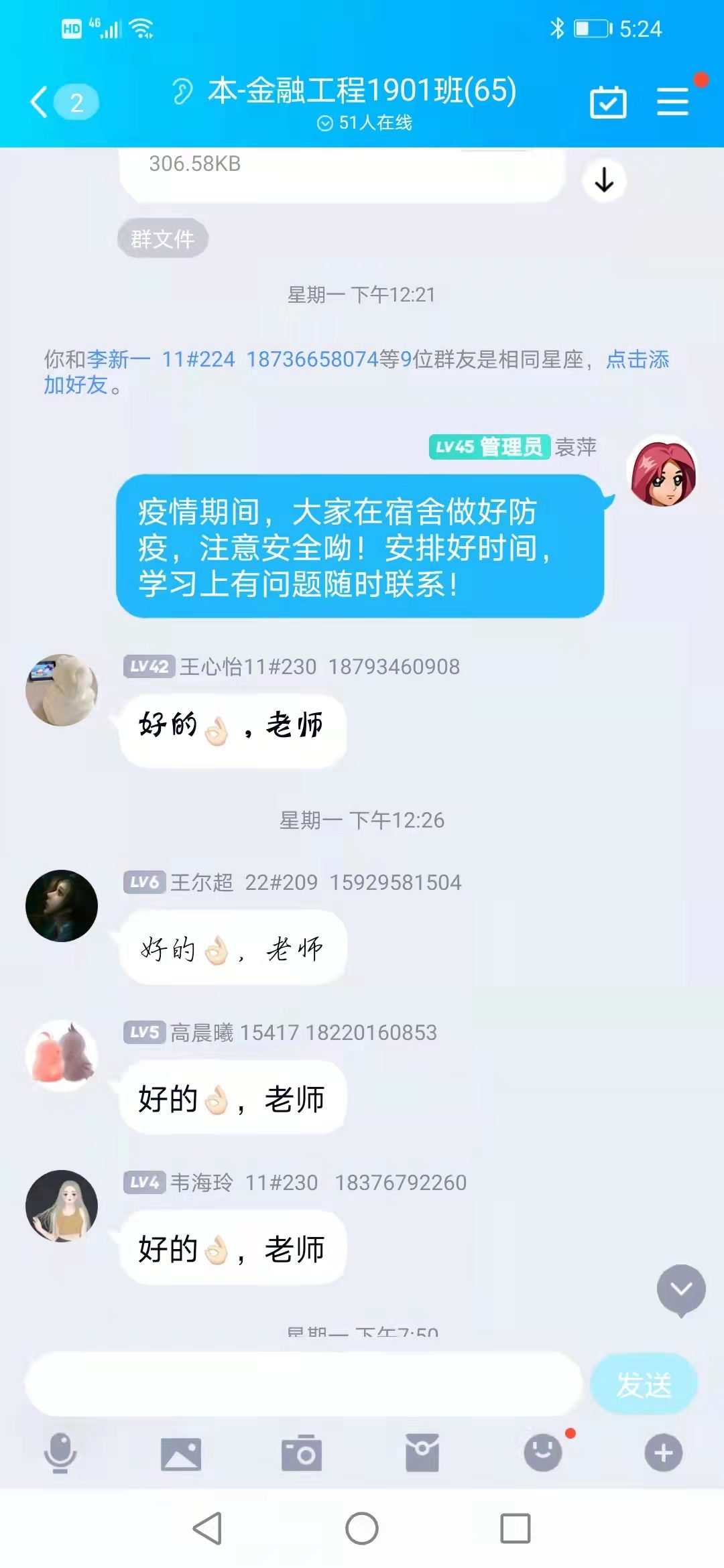 面对当前突如其来严重的疫情,为了鼓励处于封闭期的同学们,各班学业导师袁萍老师、涂玉侠老师、张元芳老师、武倩老师、王潇老师、原亚丽老师等,都不定期的进行学业指导,鼓励同学们要团结在一起,积极配合,共同抗疫,并且在此基础上安排好学习,老师们随时都和大家在一起并肩作战。涂玉侠老师线上给同学们指导创新创业大赛,引导同学们如果填写申报书、如何制作答辩PPT等;段锞老师带领专业同学参与课题研究,按同学们感兴趣的课题分小组进行线上指导,通过引导同学们阅读文献资料、组织不定期的进行线上讨论等,培养学生们的科研能力,进一步提升科研水平。