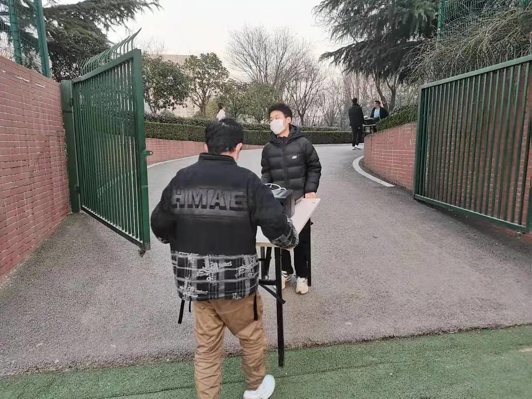 感谢每一位工作人员,辛勤付出,认真地检查每位学生的防护措施。