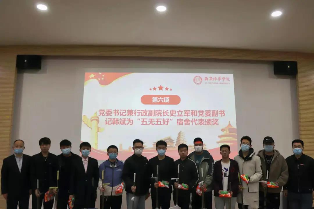 党委书记兼行政副院长史立军和党委副书记韩斌为“五无五好宿舍”代表颁奖
