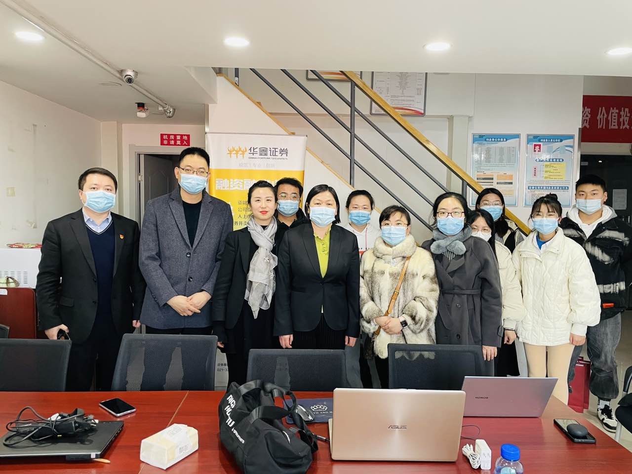 2021年12月14日,会计与金融学院经济系师生代表赴金融工程专业实习基地——华鑫证券西安高新路证券营业部走访参观交流,此次活动以回访了解金融工程专业2018级学生专业集中实习状况为切入点,带领2019级本专业优秀学生代表赴实习单位,与企业管理层及在岗实习学长深入接触,实地考察了解证券公司的业务流程,并让专业课教师在交流中提升教学层次。华鑫证券西安高新路证券营业部总经理张玲等领导热情接待了我院师生代表。