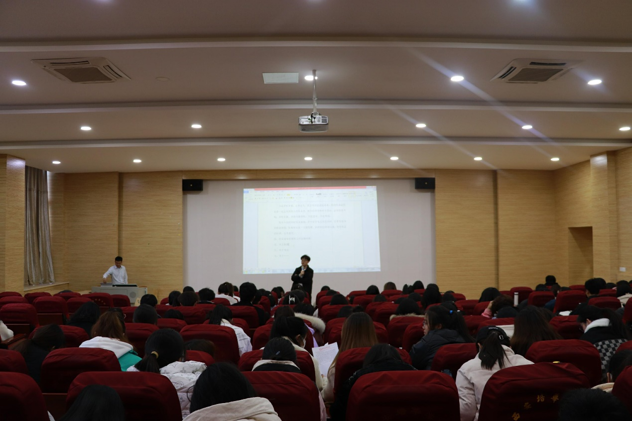首先,许老师以银行工作人员需要具备哪些素质、作为大学生如何为今后进入银行工作做准备、怎样去应聘银行的工作岗位三大方面为切入点,为现场的同学们解开了心中的谜题,为同学们今后学习、课余活动和职业选择提供了宝贵的建议。然后,许老师为同学们全面的介绍了国有商业银行和股份制商业银行的组织架构和岗位四个层次展开详细的介绍,向同学们生动的展示了商业银行不同层级不同部门的运营职能,同时就银行不同机构的岗位设置情况、岗位工作职责和不同岗位的晋升路径进行了详细的剖析,赢得了现场同学的阵阵掌声。