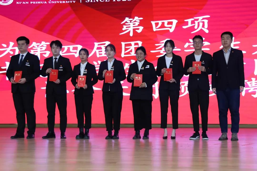 为第四届团委学生兼职副书记、学生会主席团、青年志愿者协会会长团颁发聘书