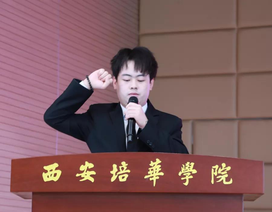 由会计与金融学院学生会第四届执行主席王佳超带领第四届干部进行宣誓。全体誓词的意义在于唤起每一位干部的责任意识,时刻牢记自己的责任,自觉加强组织性、纪律性,进一步加强我们团学青的向心力与战斗力。