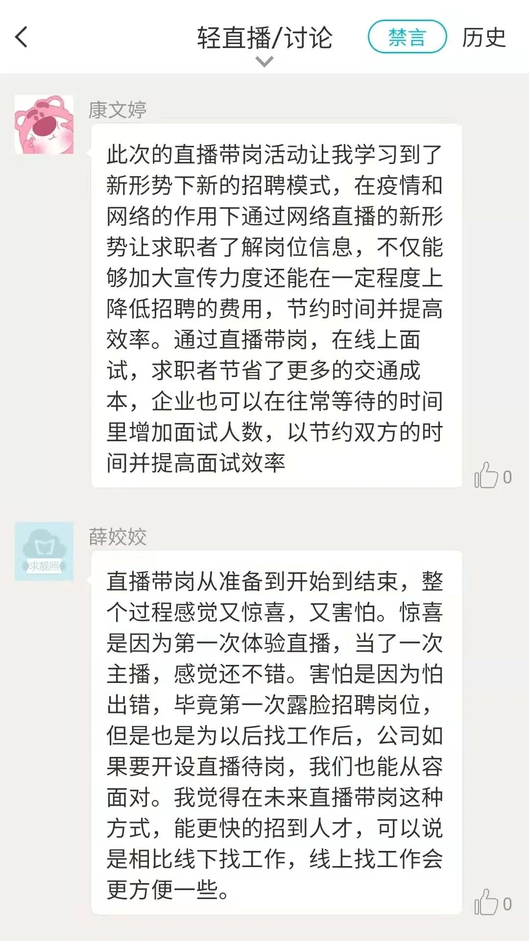通过本次直播带岗,加强了招聘人员的镜头意识和场控能力。和传统招聘相比,直播带岗没有与应聘者面对面的交流,取而代之的是弹幕中的文字表达,应聘者能有更自由的提问方向。因此在前期的准备的过程中,招聘人员需要熟悉公司信息、岗位需求,更重要的是去引导直播间的观众,并宣传企业正面形象。