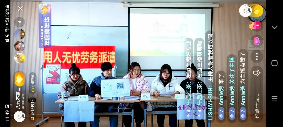 2021年11月24日,西安培华学院人力资源管理专业的模拟企业线上招聘会隆重召开,到场的企业是由学生分组成立的各家虚拟公司,分别涉及餐饮、医美、教育、及人力资源服务和咨询行业等。各家企业按照自身需求开放岗位,在直播间给求职者们“直播送岗”。