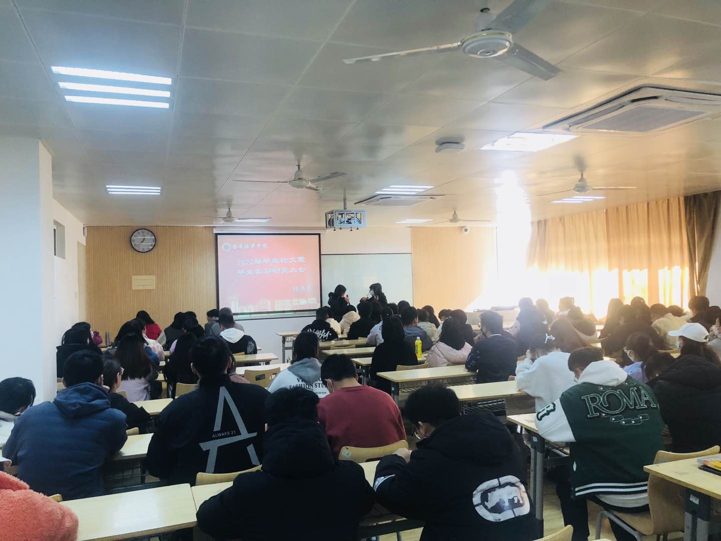 毕业论文是培养学生创新思维能力和研究型学习能力的重要形式,也是检验教学效果、考察学生综合能力、评估学业成绩的一个重要方式。本次动员大会,毕业论文的安排进度和写作要求明确了2022届毕业生论文写作的努力方向,也为毕业生工作的顺利开展打下了夯实的基础。