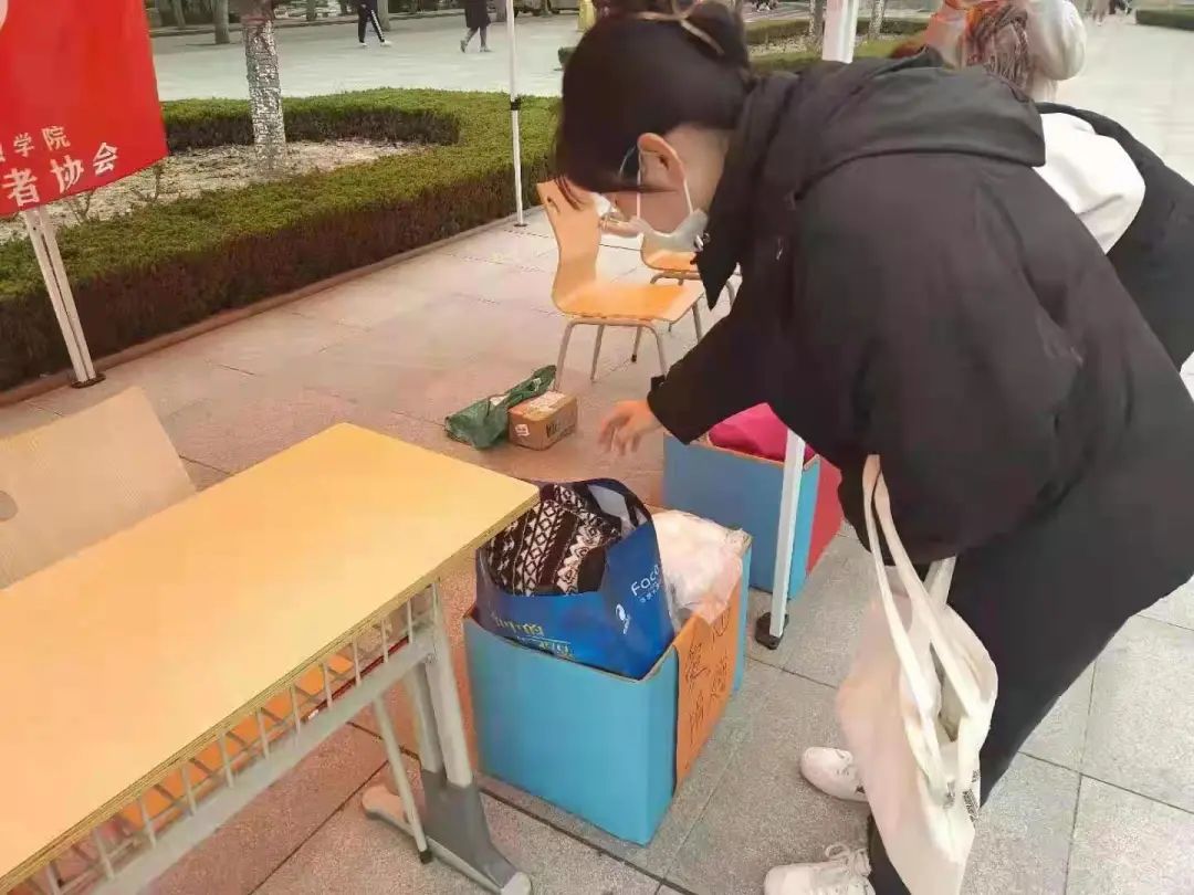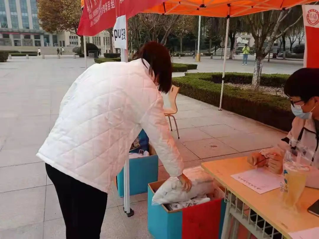 再见金秋十月,迎来了有丝丝寒意的十一月。初冬的寒冷已经迫不及待走来,2021年11月16日在会计与金融学院青年志愿者协会的组织下,在综合楼西广场举行了“衣+衣=爱·冬日”捐衣活动。我校师生满怀爱心,在活动场所积极捐赠衣物、被子等御寒物品,帮助山区的朋友们顺利过冬。