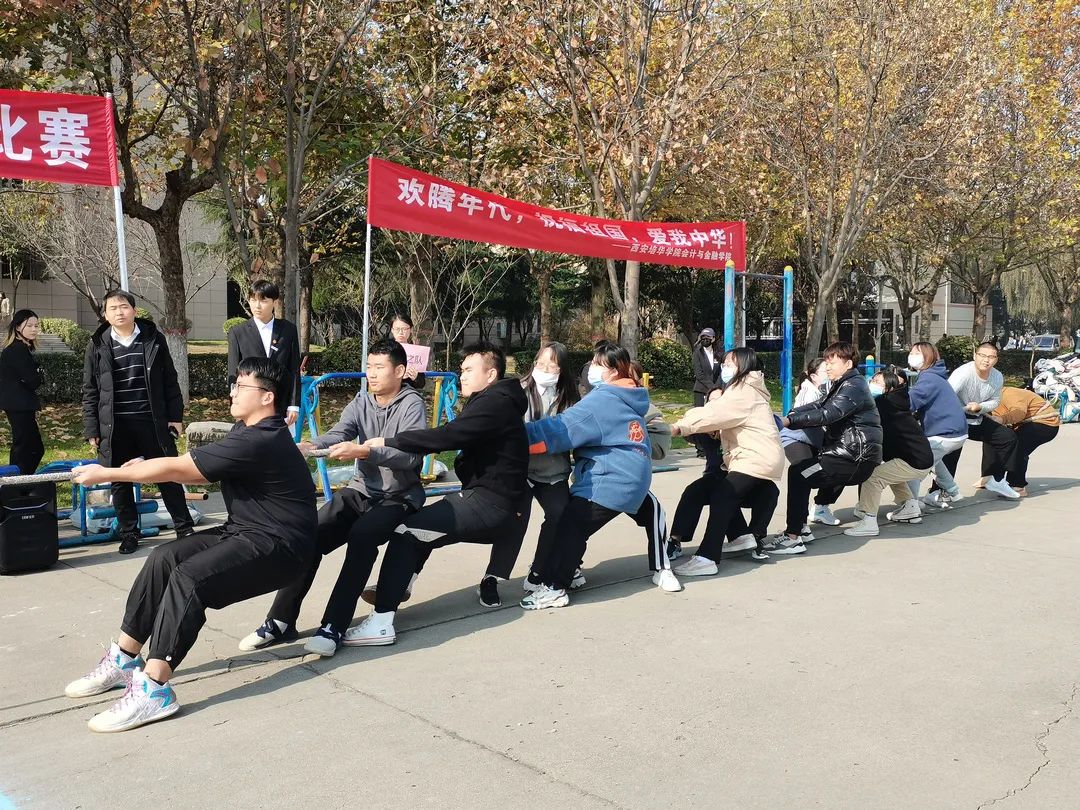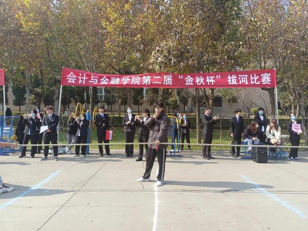 为了丰富学生们的课余文化生活,加强学生之间的交流,提高班级学生的凝聚力,培养学生的团队合作能力,会计与金融学院本着“友谊第一,比赛第二”的体育精神,举办了“金秋杯”拔河比赛。