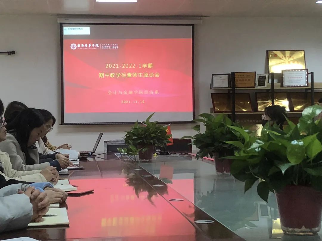 为了促进我院教学质量和教学管理水平的不断提高、全面掌握上半学期教学动态、及时发现和解决教学中的问题、有效地监控和评价教学运行质量、营造学生良好的学习气氛。会计与金融学院各系师生于近期陆续开展了期中教学检查师生座谈会,参会师生纷纷就本学期所遇到的问题进行沟通、商讨以及解决,接下来就让我们走进各系师生的期中座谈会,去了解此次活动开展情况。