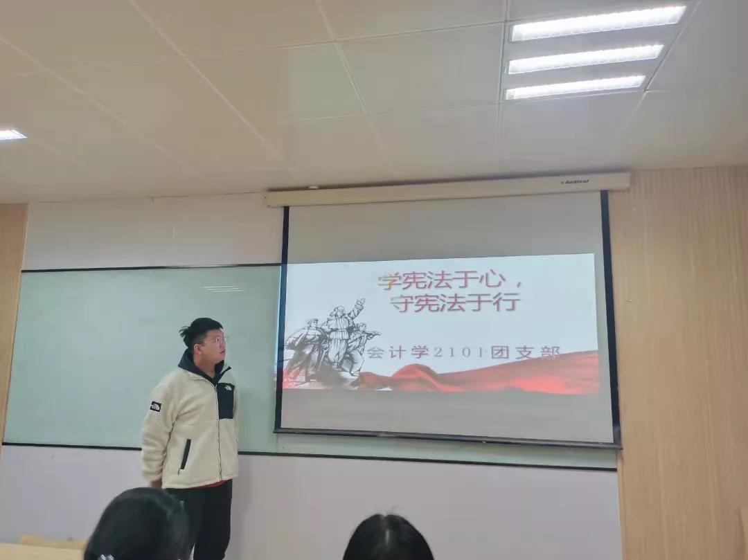为深入开展青年大学习,宪法学习宣传,坚持以社会主义核心价值观为引领,以爱国主义教育为重点,紧密结合历史文化和国情,进一步普及宪法知识,弘扬宪法精神。会计与金融学院团委于2021年10月11日~11月15日积极引导各团支部2021年度“知宪法于心,守宪法于行”的团日活动。