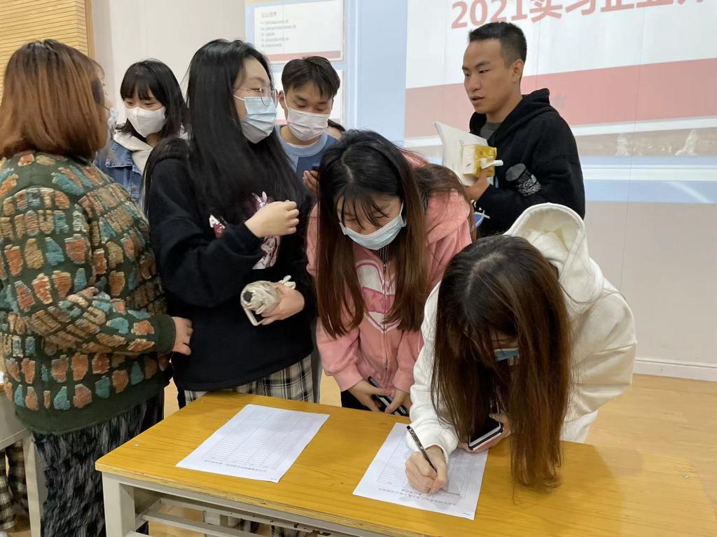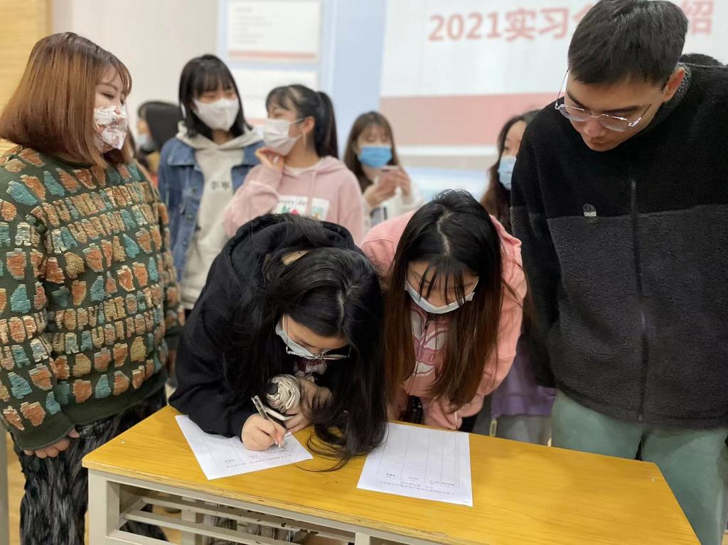 最后,在单位介绍之后,本次参加动员会的同学们现场进行意向实习单位的选择,并在老师们的指导下进行登记,同学们积极报名,场面火热。