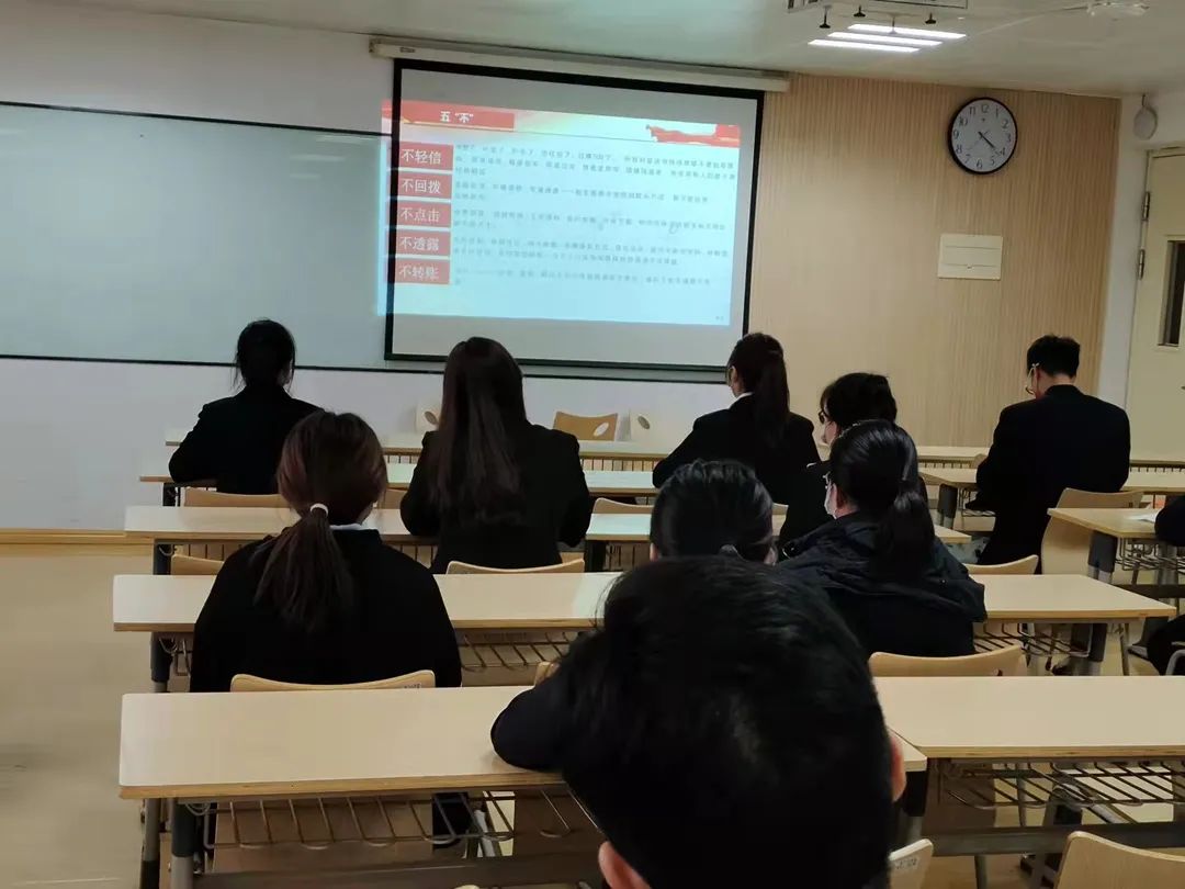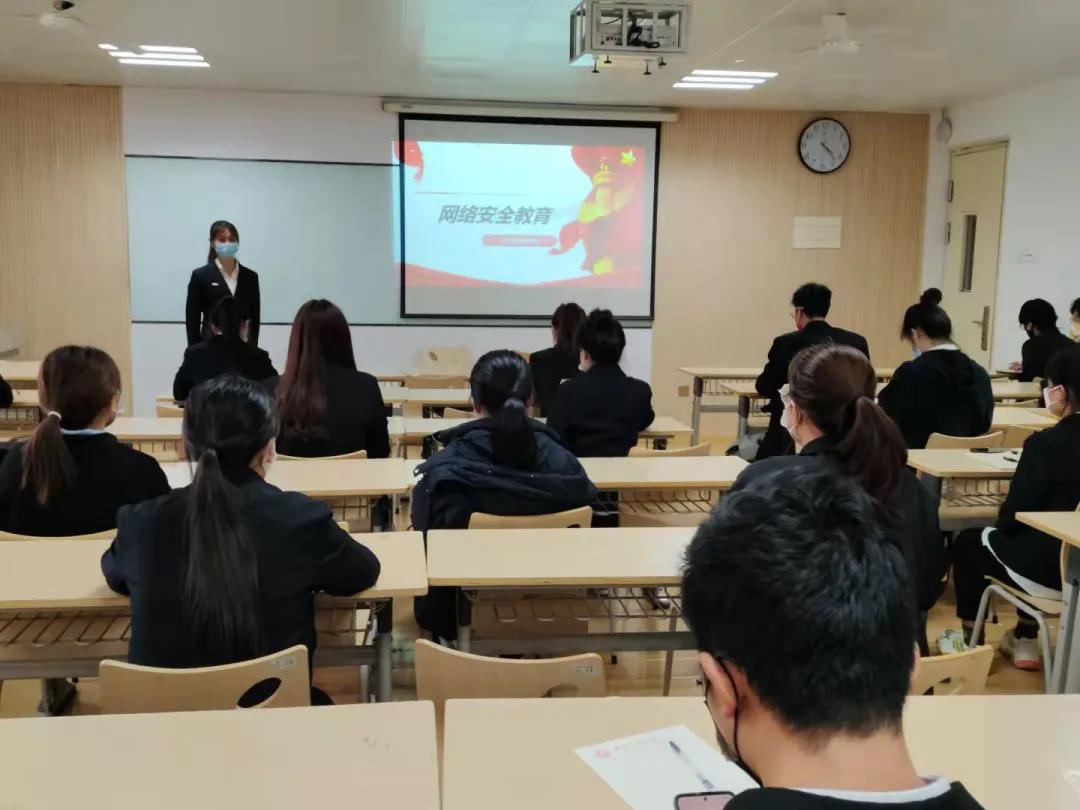 活动开始由各学生党支部活动负责人简要介绍关于网络安全教育方面的知识,然后通过PPT讲解、观看网络安全与信息化专题教育视频、学习一系列《网络安全法》并结合具体的案例,向同学们讲述了一些校园周边存在的网络安全隐患和网络安全常识。