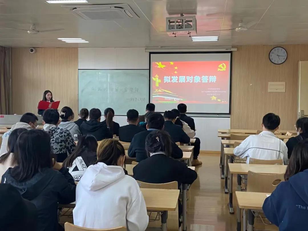各学生党支部先由拟发展对象进行自我介绍,采用PPT的形式,从考察期间个人思想政治、工作学习、示范带头作用等方面汇报自己的情况。所有拟发展对象进行完自我陈述后,与会支部书记和党员同志对拟发展对象进行现场提问,答辩者进行现场回答。
