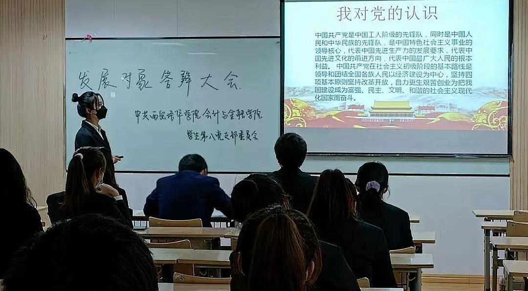 为了使党员拟发展对象端正态度、重视理论学习,进一步提高自身修养,增强党组织的工作透明度,使其为成为一个合格的共产主义接班人而做好充分准备,西安培华学院会计与金融学院各学生党支部于2021年10月18日至22日,在博远楼召开了关于拟发展对象答辩的支部主题大会,各学生支部书记、支部全体成员参加了会议。