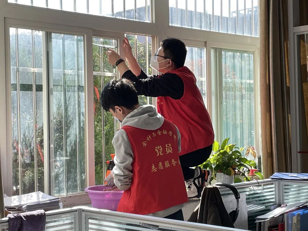 首先,我院党委书记兼行政副院长史立军老师对教职工和学生党员代表进行了明确分工,随后老师和学生们拿起清洁工具,自行进行了小组内打扫,有的人负责擦玻璃,有的人负责扫地,有的人负责拖地。在打扫过程中,师生们井然有序,各司其职,积极热情地投入到打扫中。